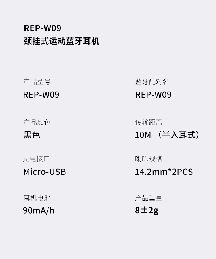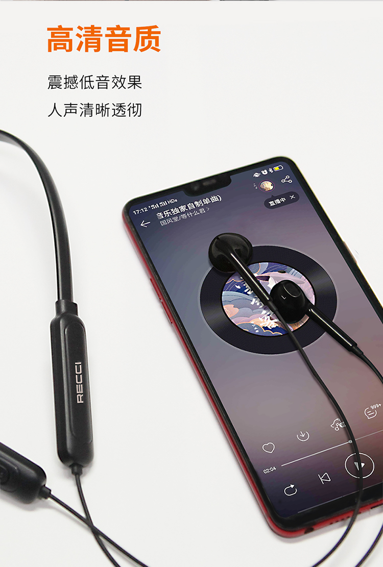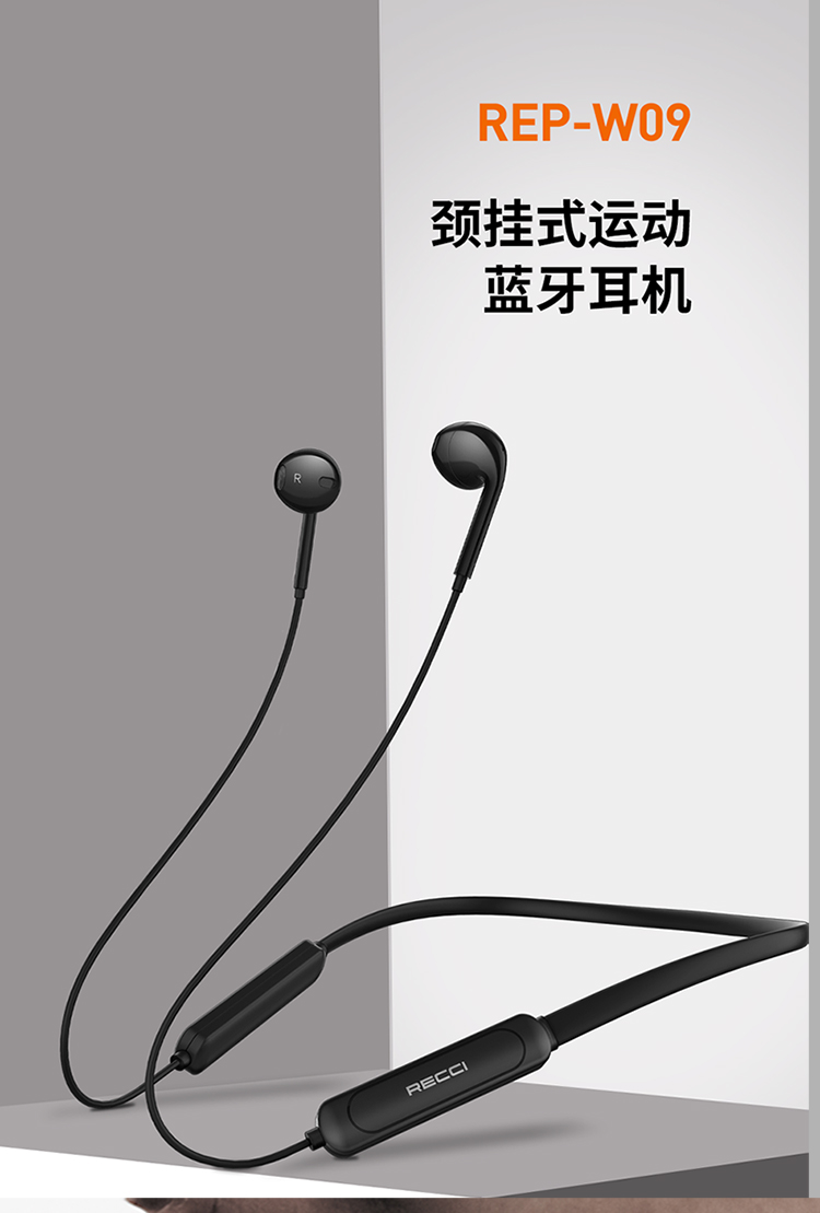 RECCI锐思云歌REP-W09无线运动蓝牙耳机跑步双耳入耳式耳塞颈挂脖式适用于iPhone手机苹果华为安卓