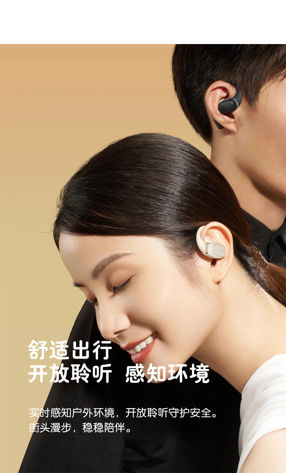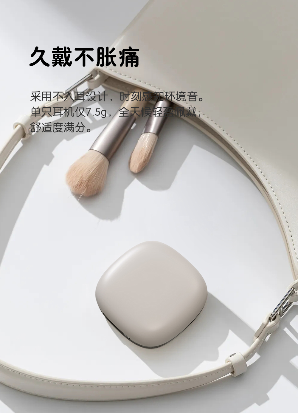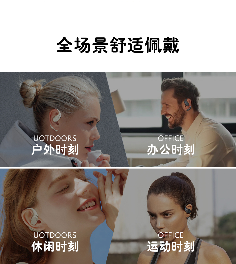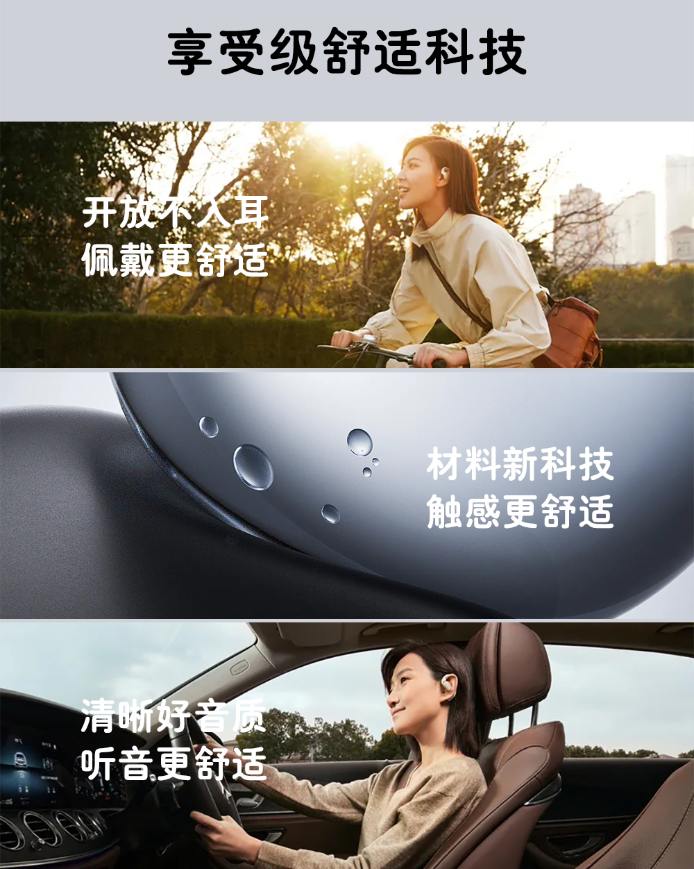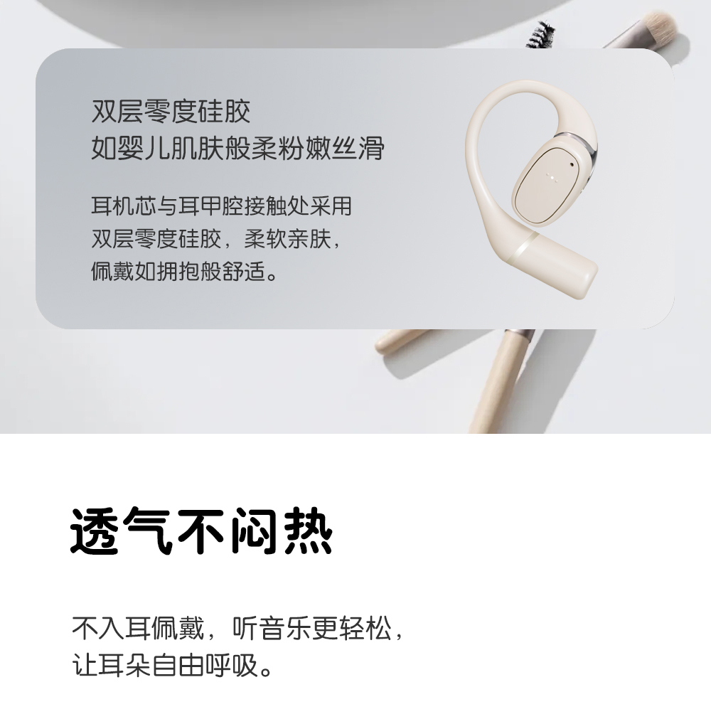 2,全天候轻盈舒适,久戴不累耳,兼顾音乐与环境音,佩戴更安全