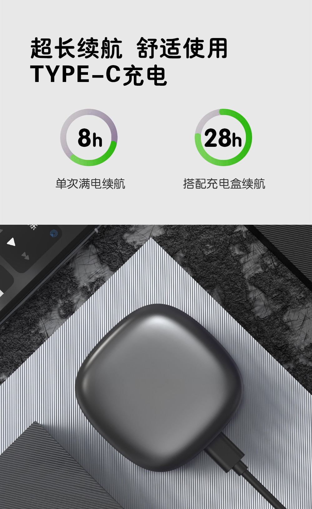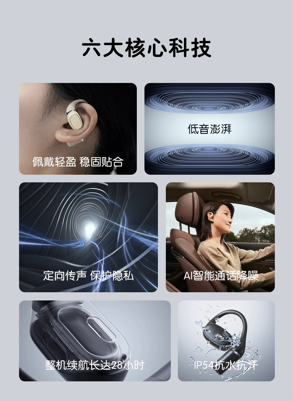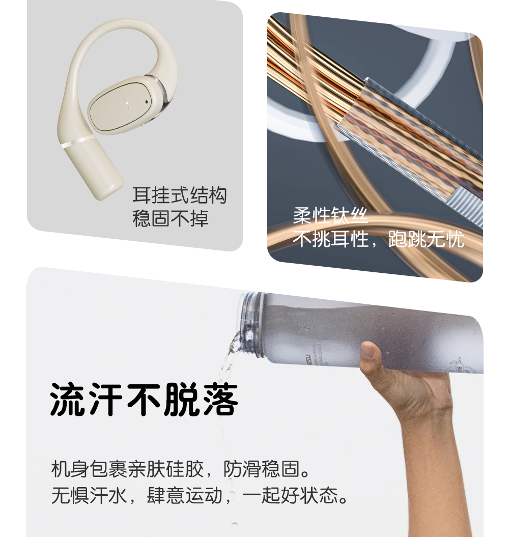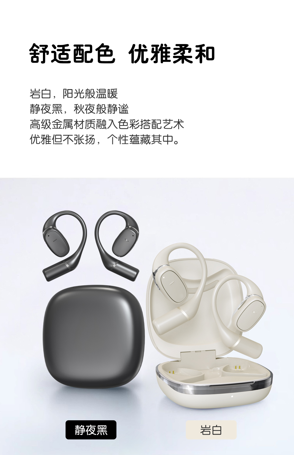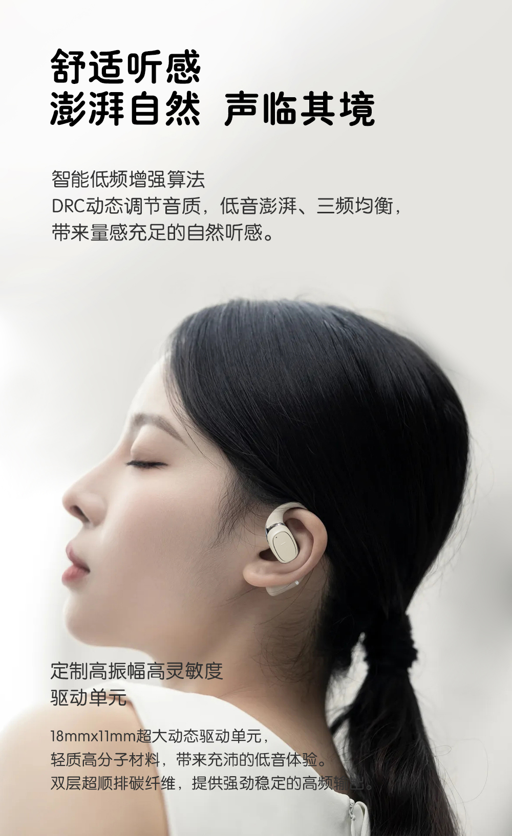 2,全天候轻盈舒适,久戴不累耳,兼顾音乐与环境音,佩戴更安全