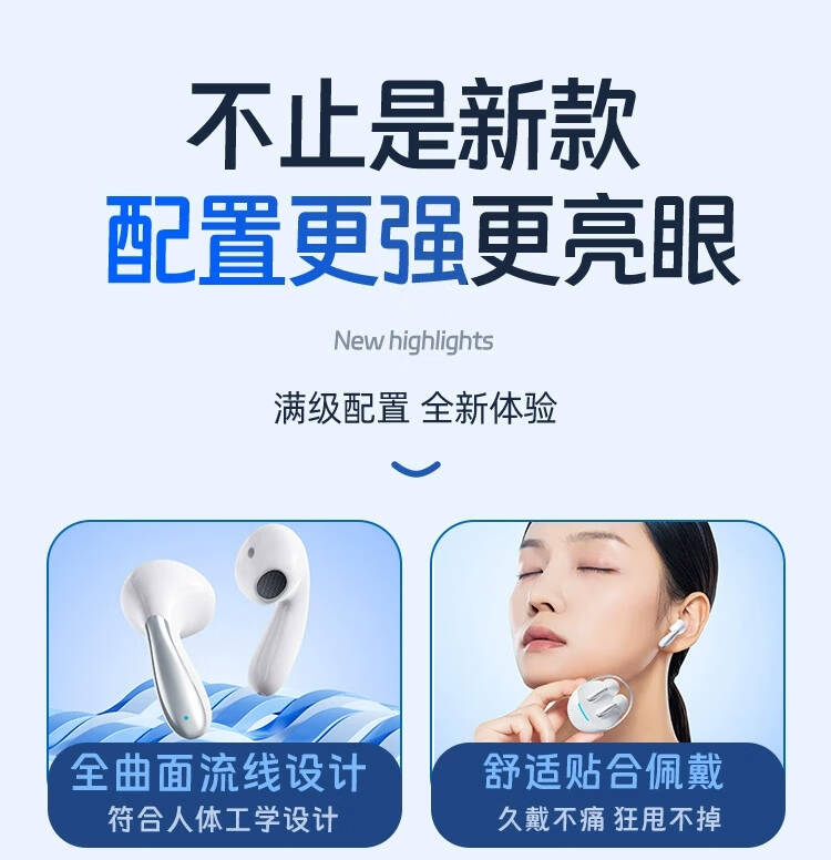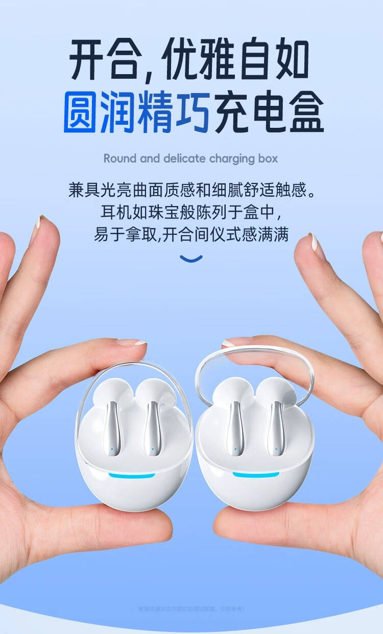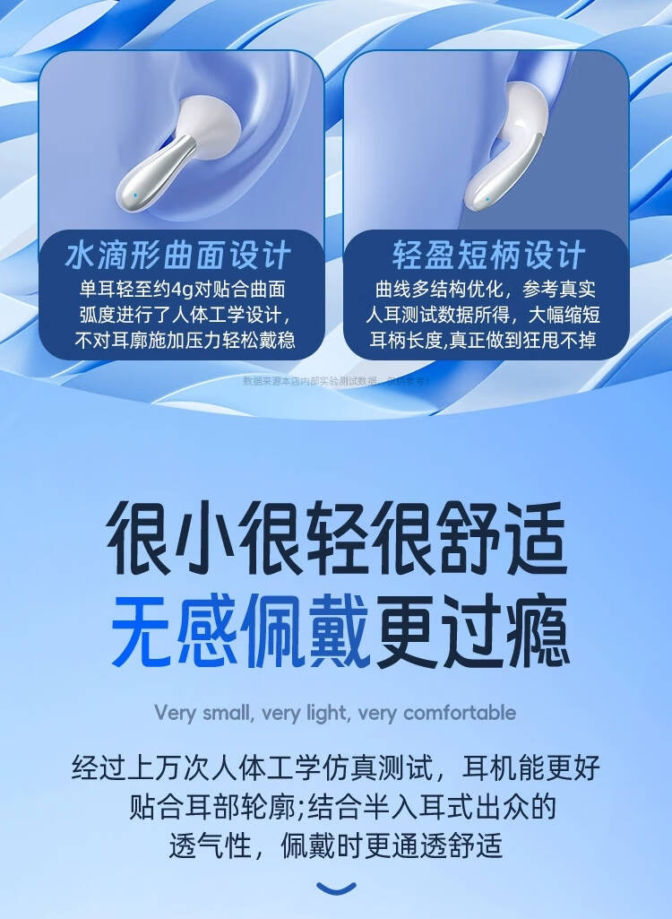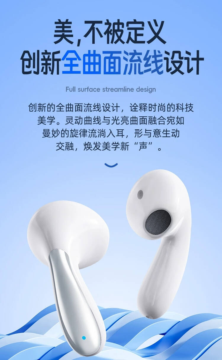 2,曲面流线设计,佩戴不易脱落.5.3版蓝牙芯片,不卡顿,不延迟;