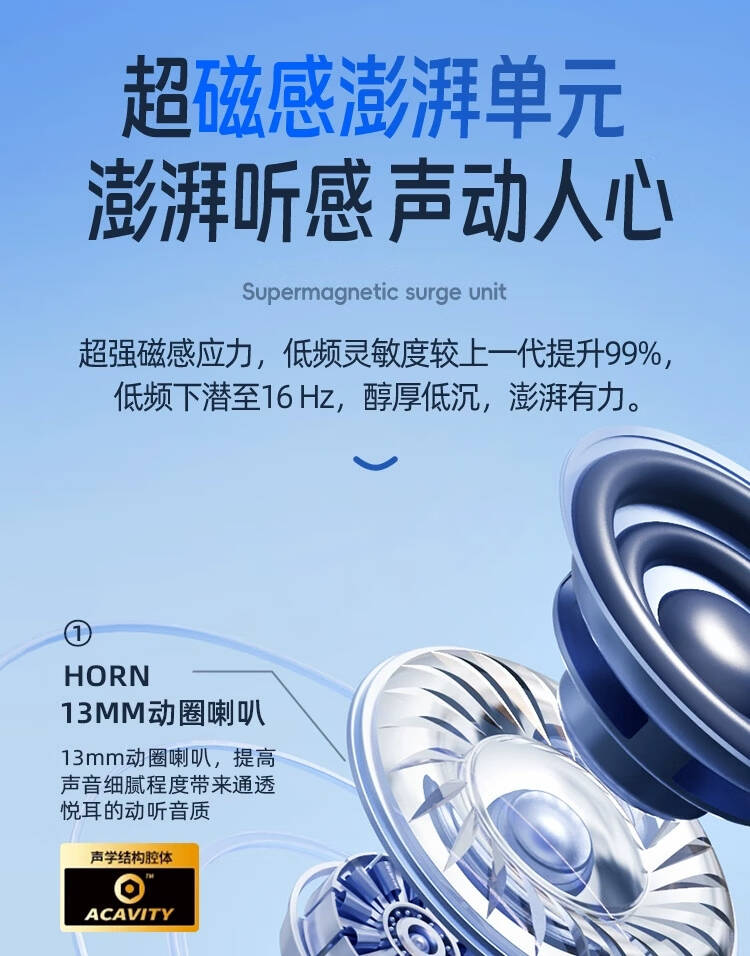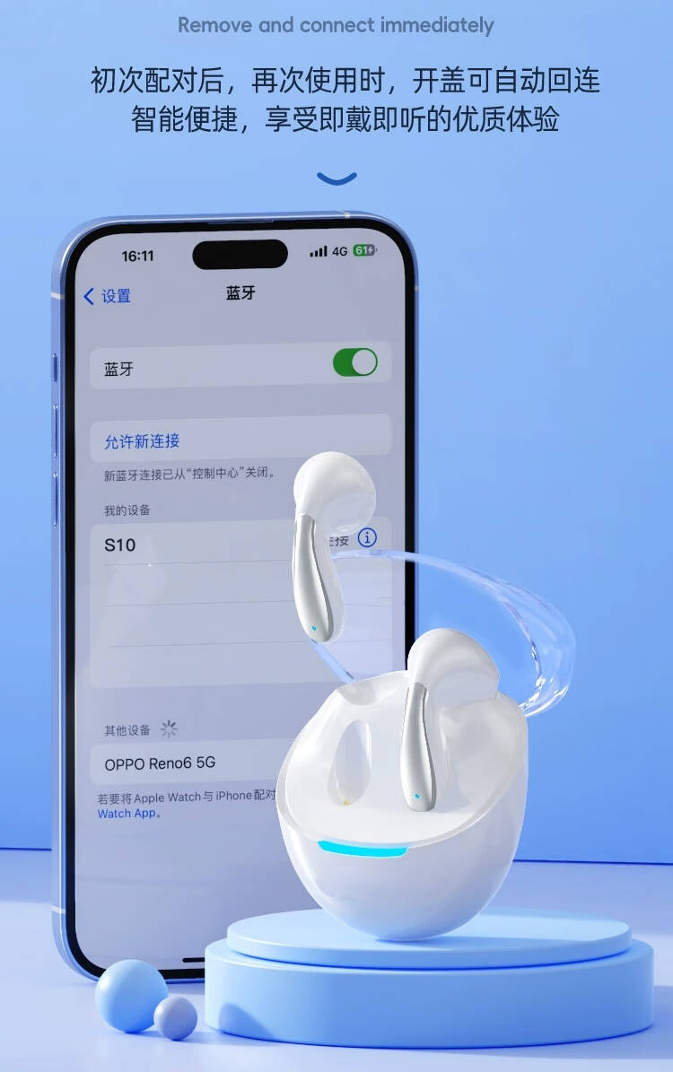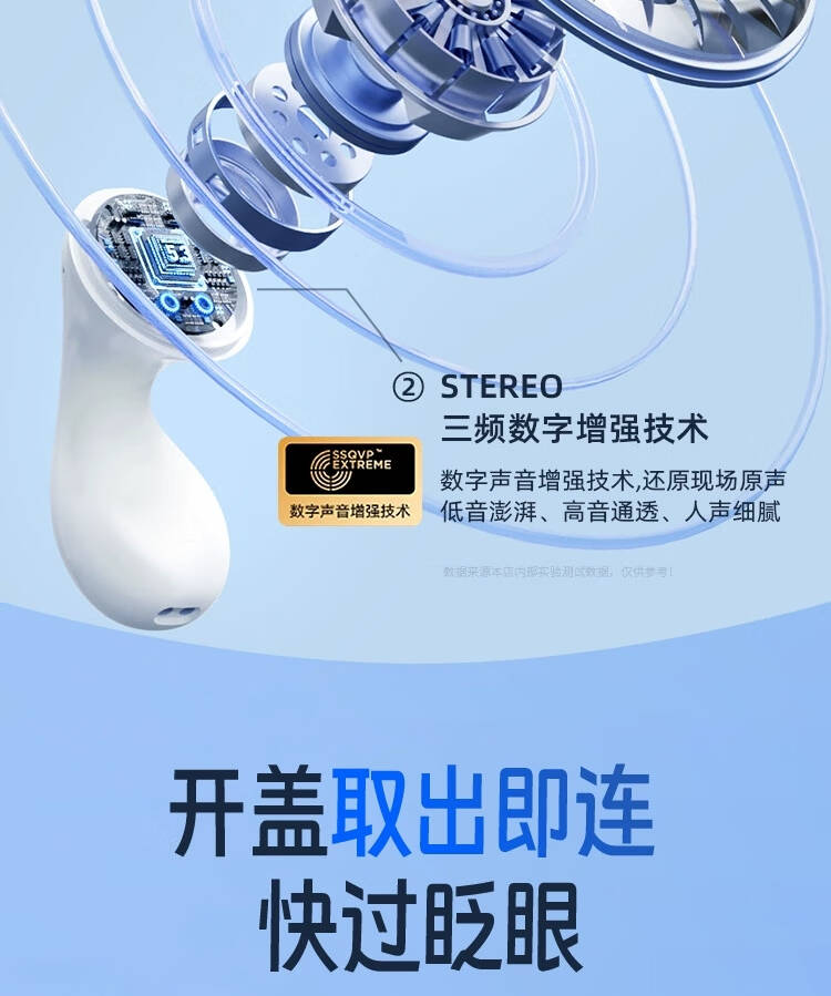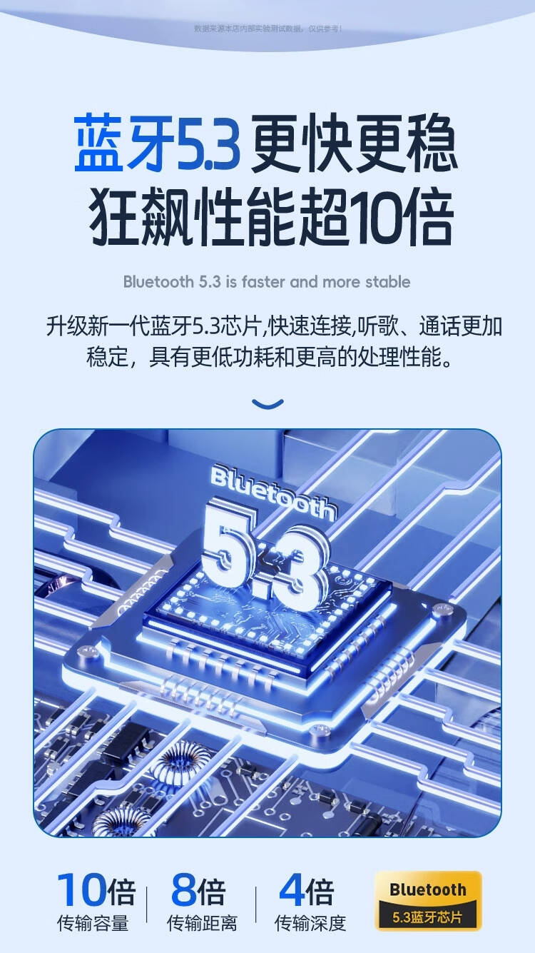 2,曲面流线设计,佩戴不易脱落.5.3版蓝牙芯片,不卡顿,不延迟;