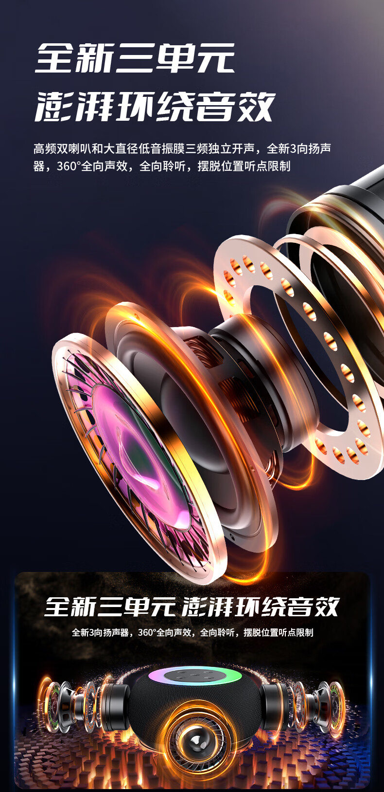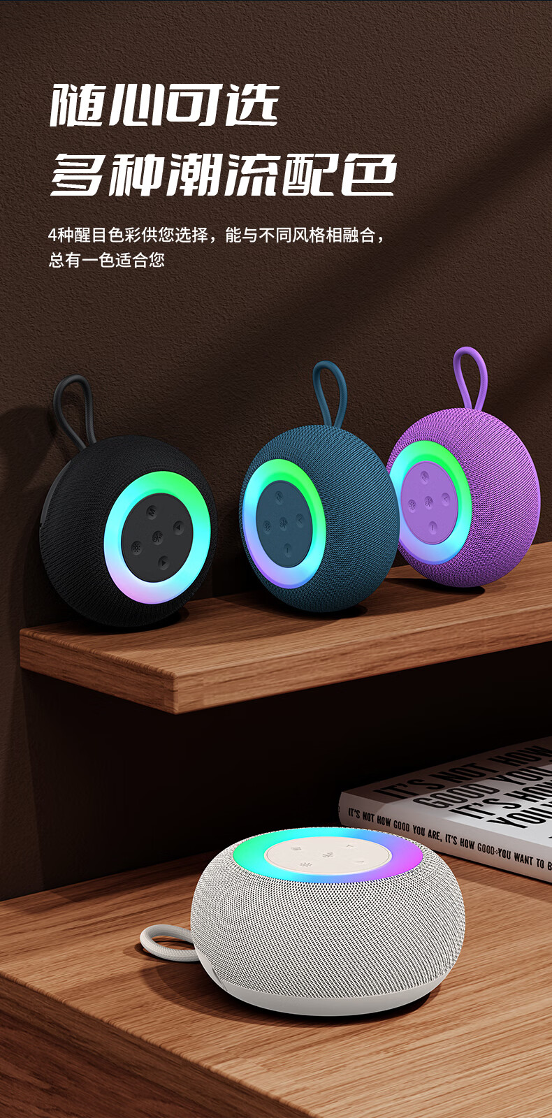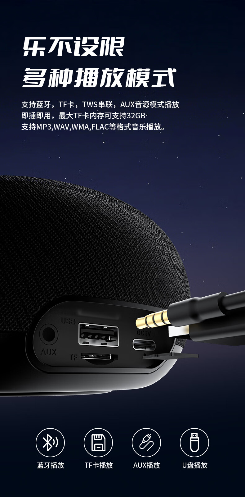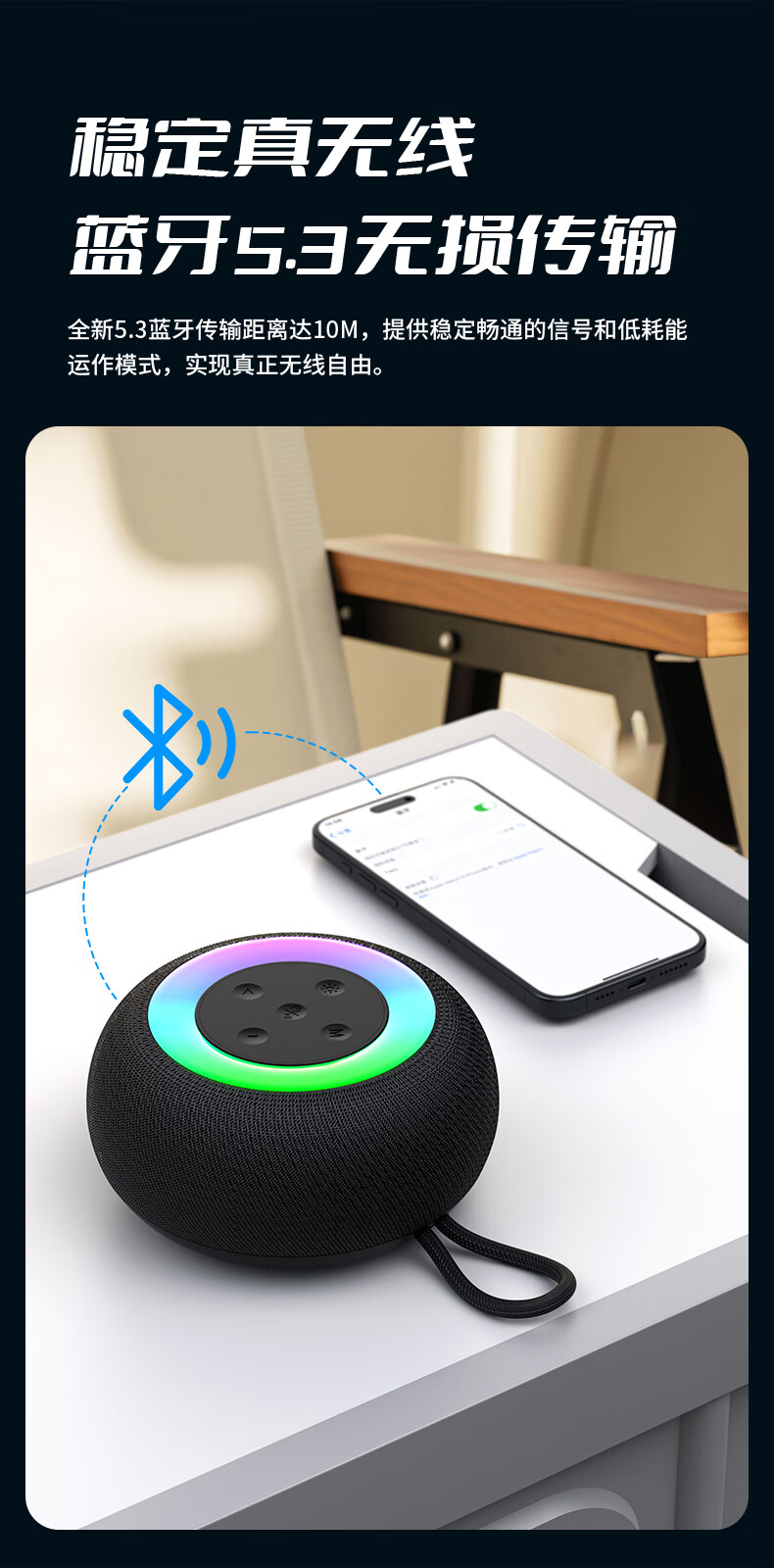 1,户外桌面音箱,16W大功率,震撼重低音振膜; 2,智能降噪高清通话; 3,TWS串联杜比环绕声,意思可两台同时连接。 4,LED七彩灯光环绕呼吸; 5,4000mAh持久10小时续航,防水防尘, 6,可以蓝牙播放,TF卡播放,AUX播放,U盘播放。
