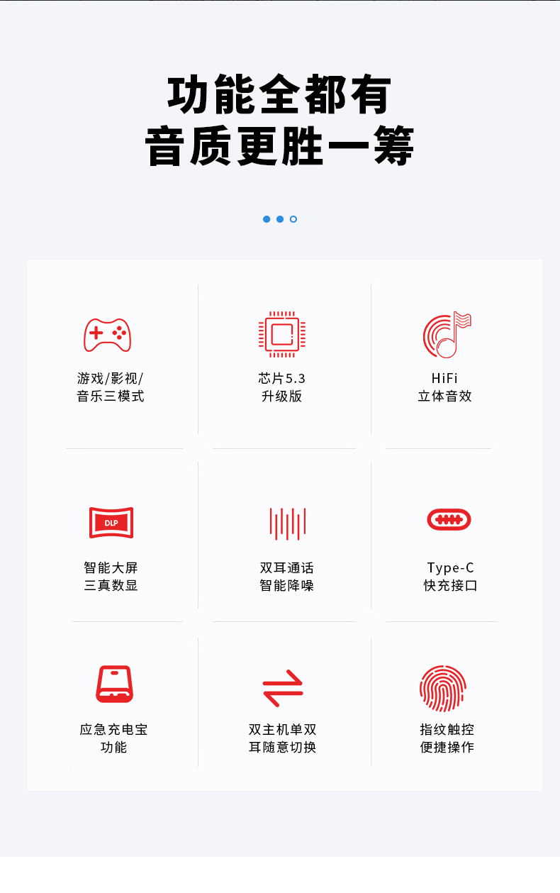 1,不仅仅给耳机提供强力续航,还可为手机充电; 2,升级蓝牙5.3,无需担忧断连卡顿,无线堪比有线;