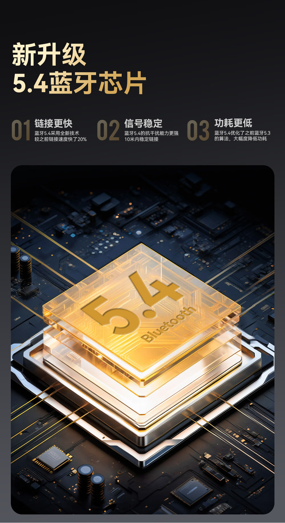 4,5.4蓝牙芯片,更快速连接,低能耗