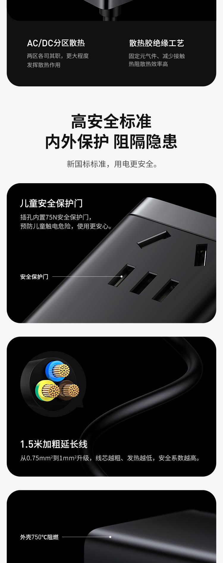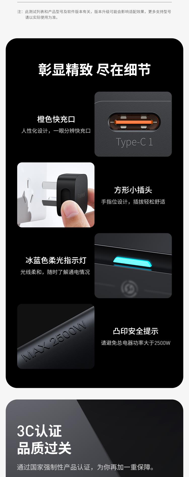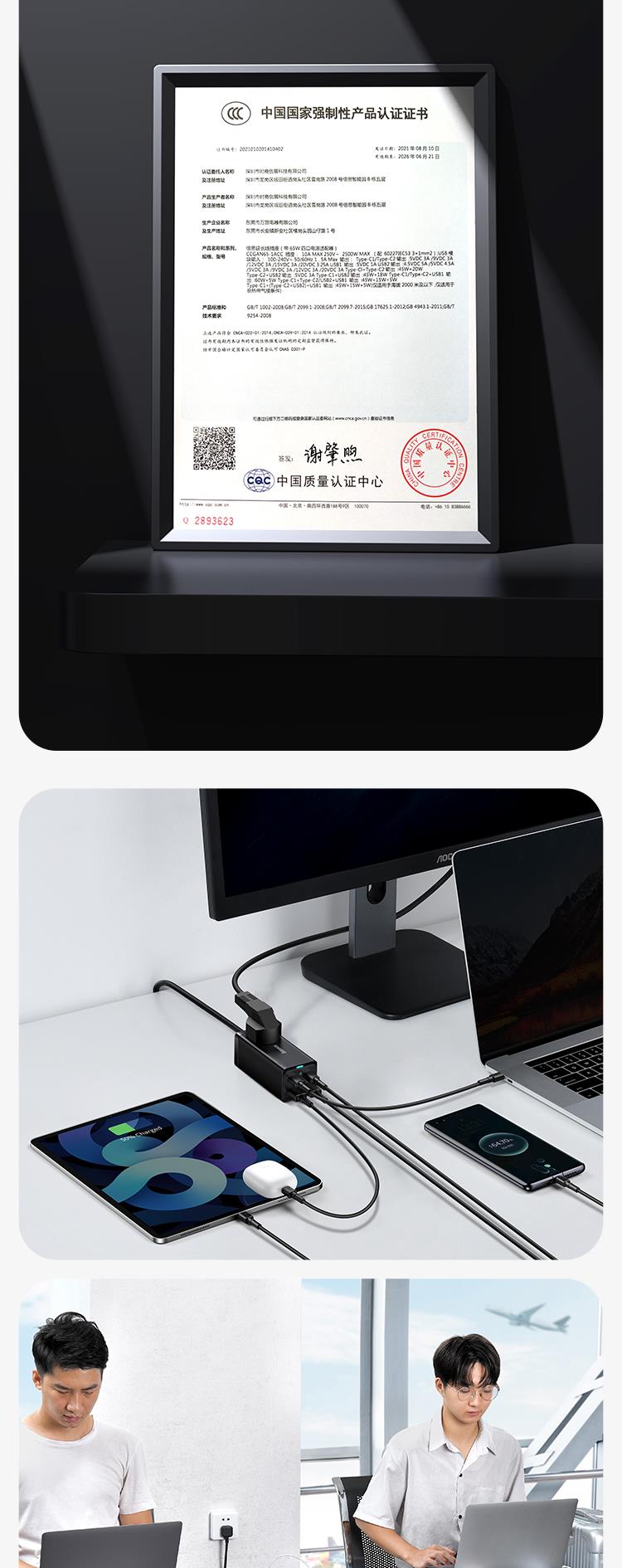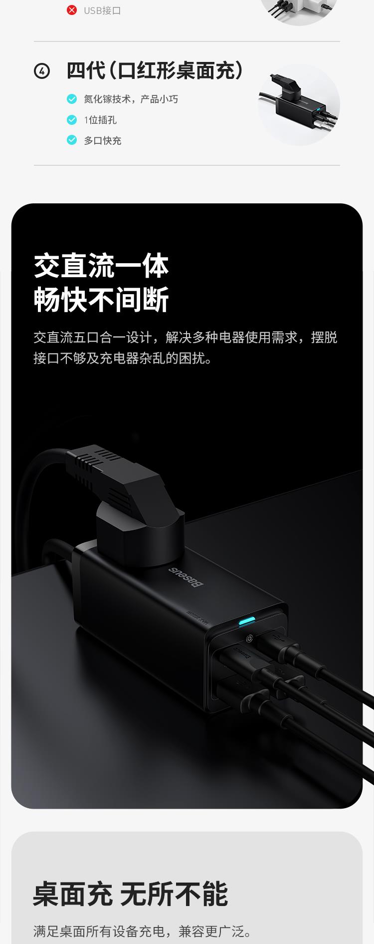 倍思GaN3pro氮化镓桌面插线板AC+2U+2C65W中规