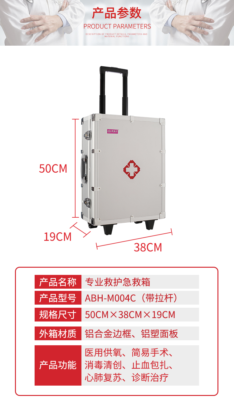 爱备护专业救护急救箱(综合型)ABH-M004C(带拉杆)