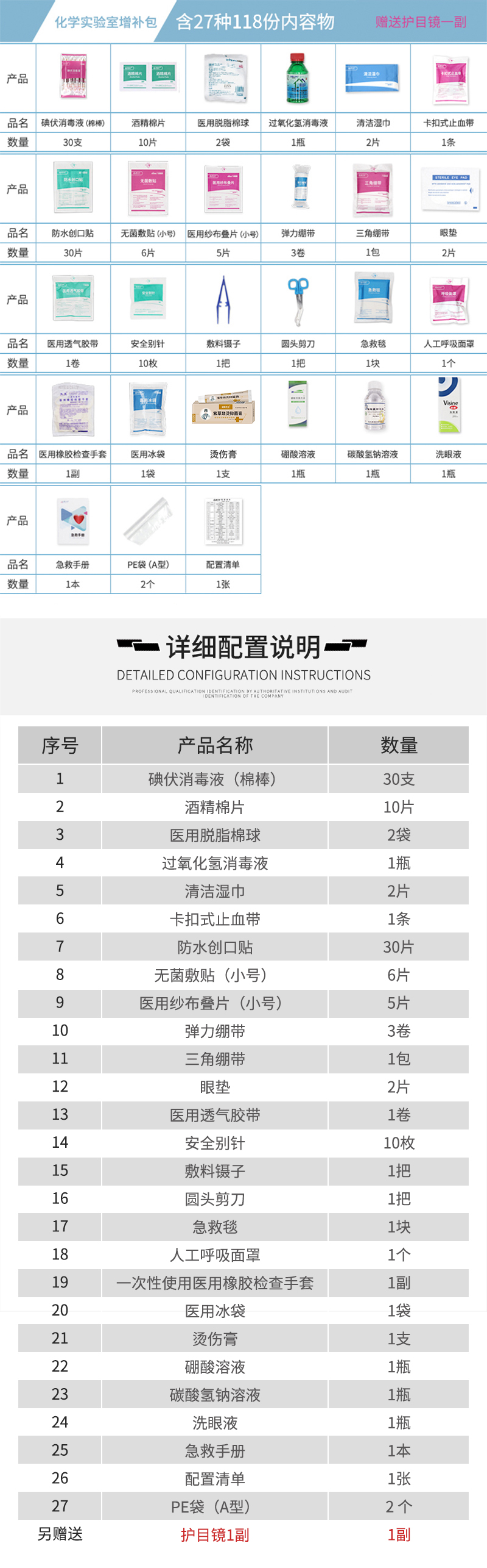 爱备护化学实验室急救药箱增补包ABH-ZB01A