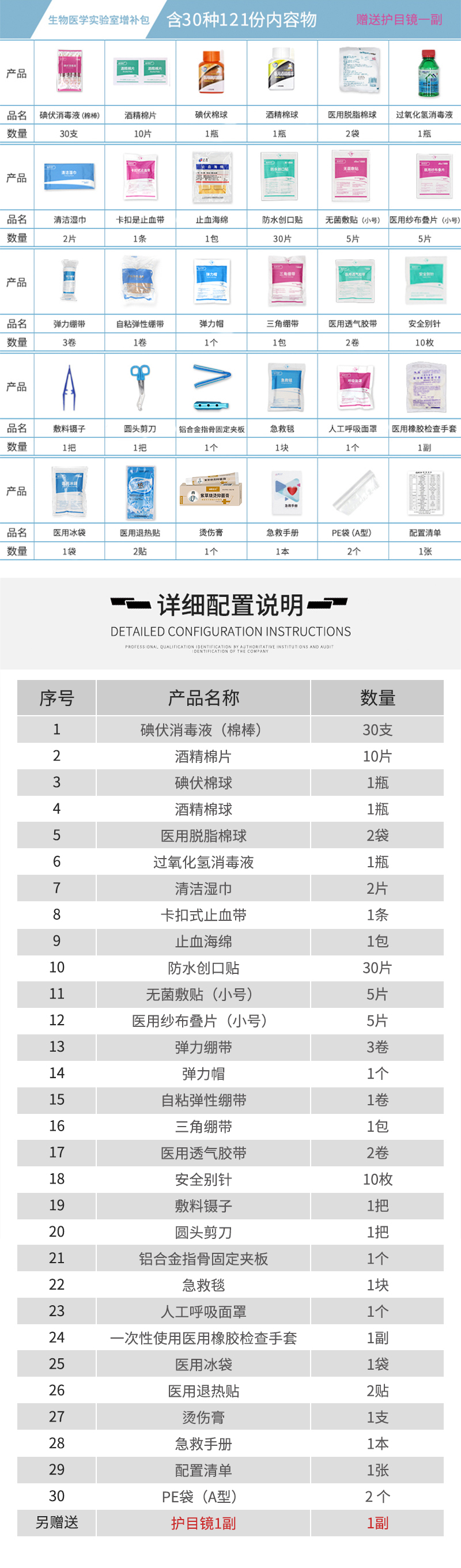 爱备护生物医学实验室急救药箱增补包ABH-ZB01B