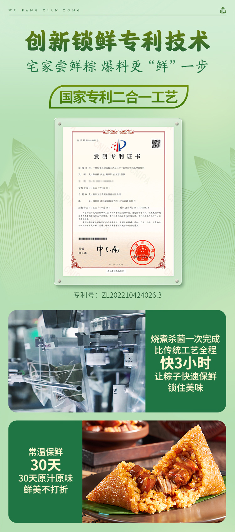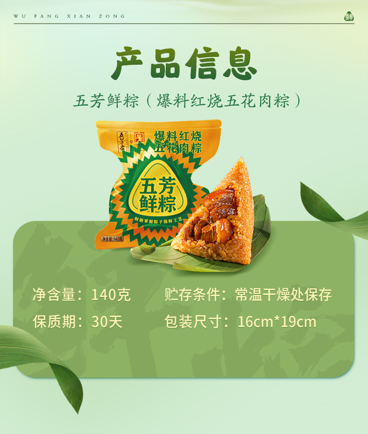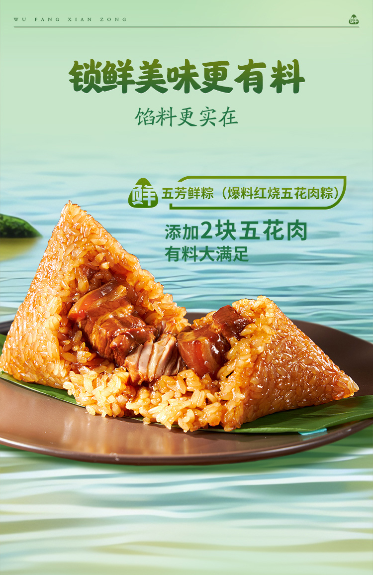 五芳斋锁鲜粽子 锁鲜爆料红烧五花肉粽140g