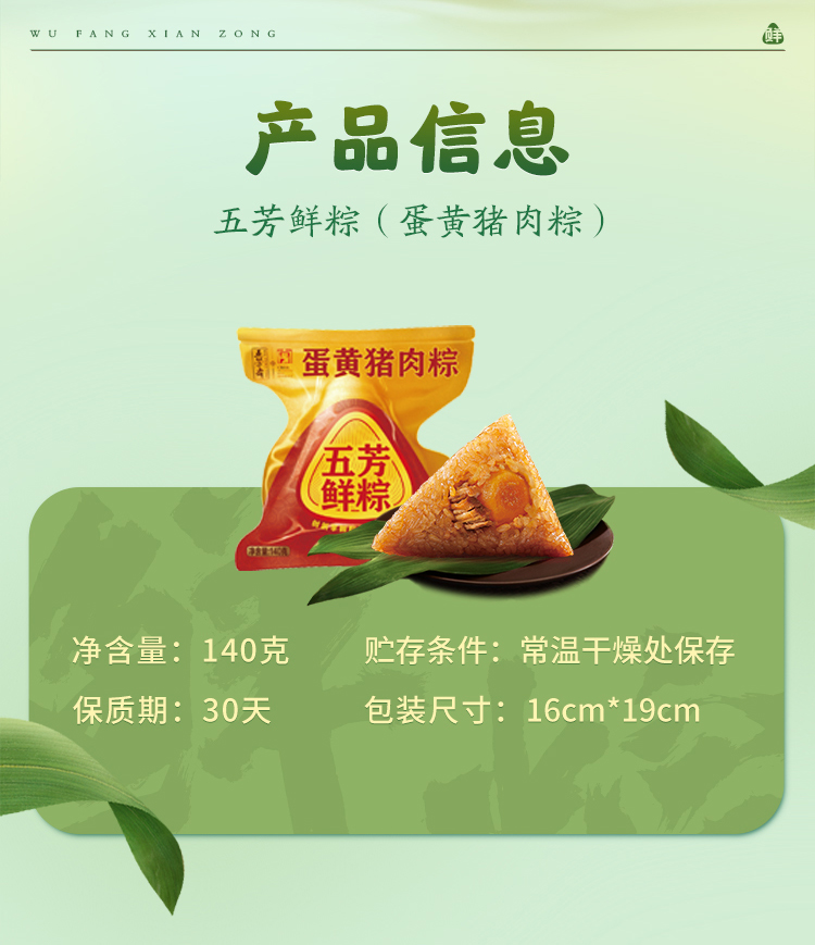 五芳斋锁鲜粽子锁鲜蛋黄猪肉粽140g