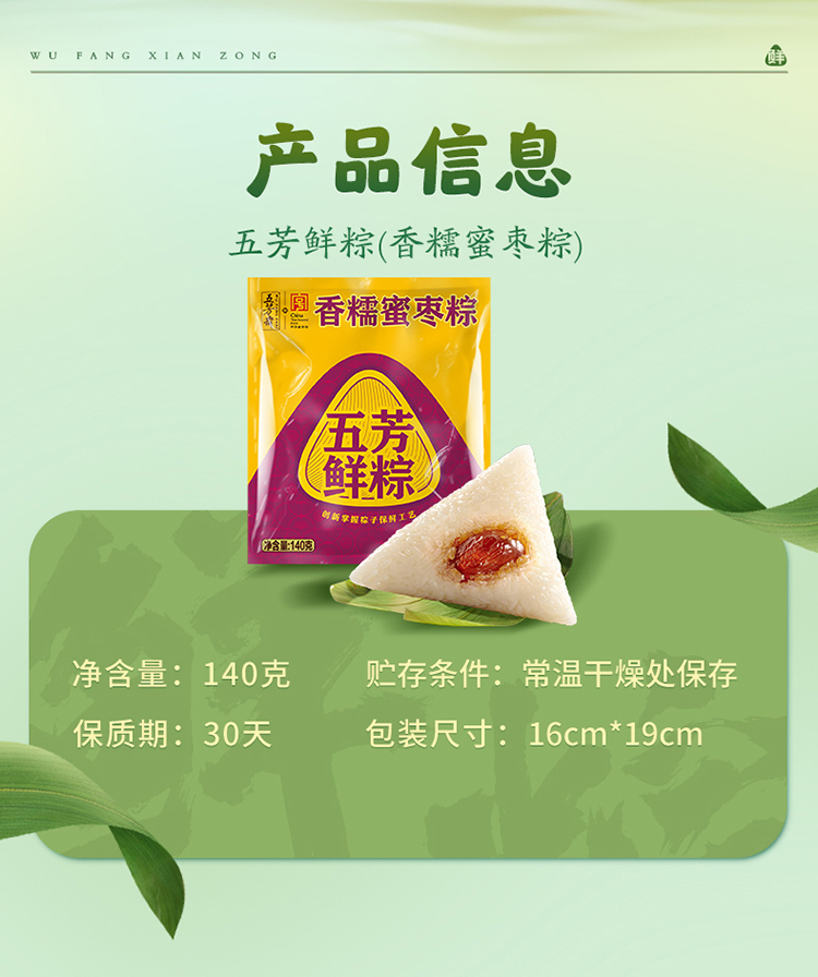 五芳斋锁鲜粽子锁鲜香糯蜜枣粽140g
