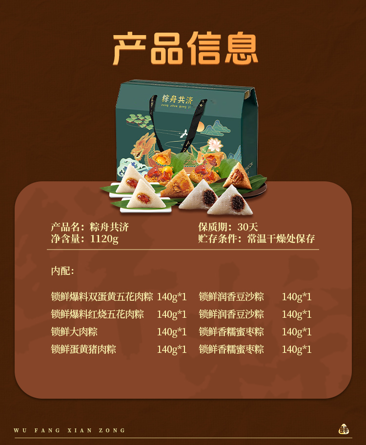 五芳斋锁鲜粽子礼盒粽舟共济1120g tbwfzsx-05