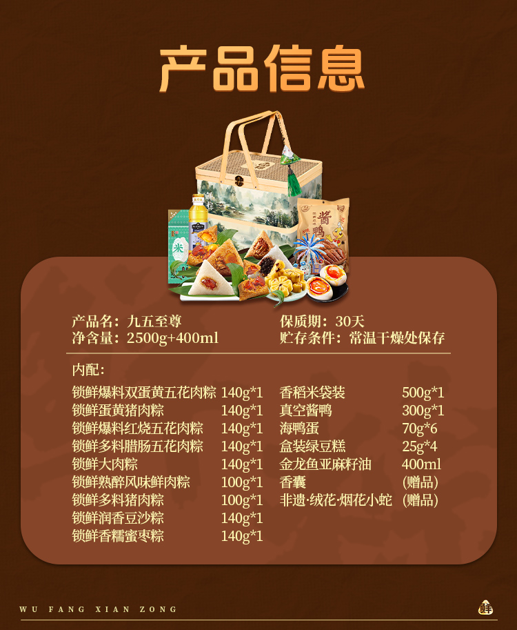 五芳斋锁鲜粽子礼盒九五至尊2900g tbwfzsx-03