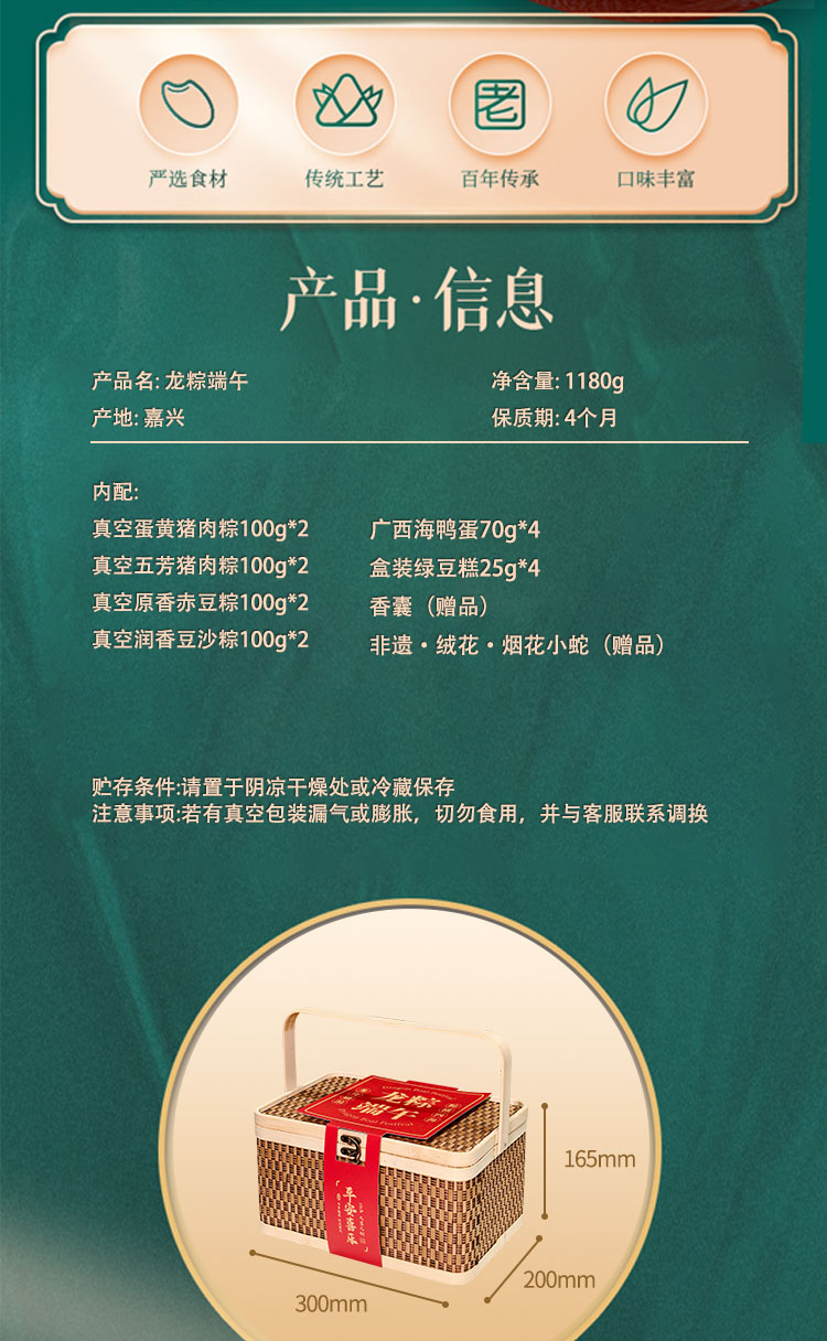 五芳斋真空粽子礼盒龙粽端午1180g wfztbd-2505