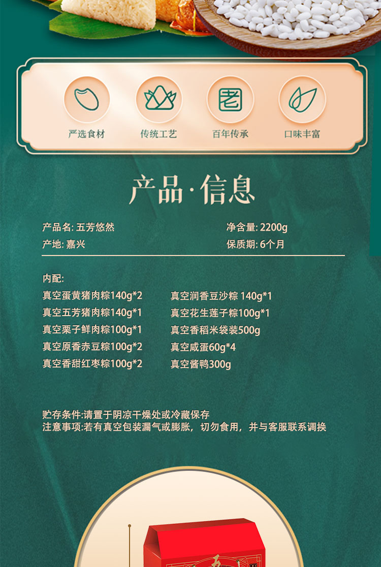 五芳斋真空粽子礼盒五芳悠然2200克 wfztbd-2506