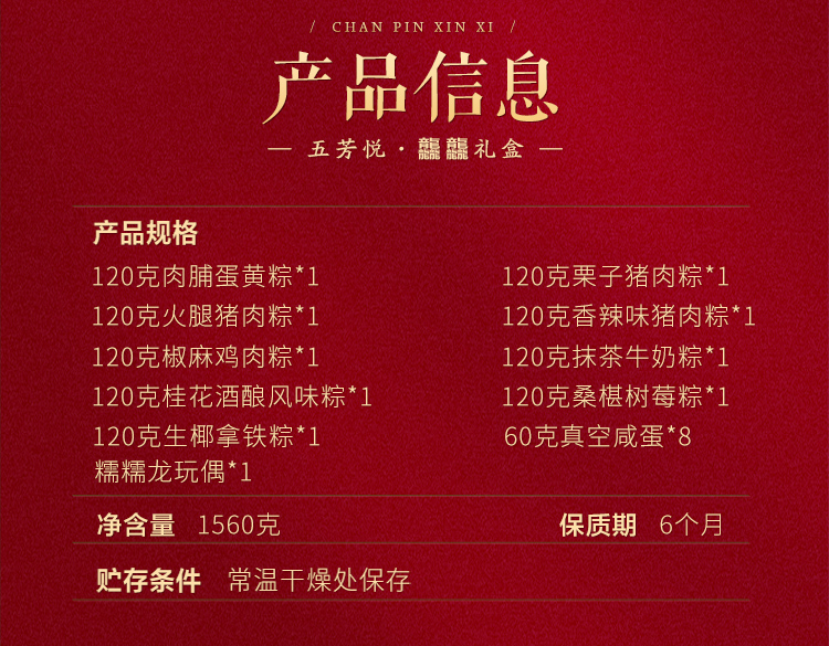 五芳斋真空粽子礼盒五芳悦·龘龘1560g wfztbd-2507