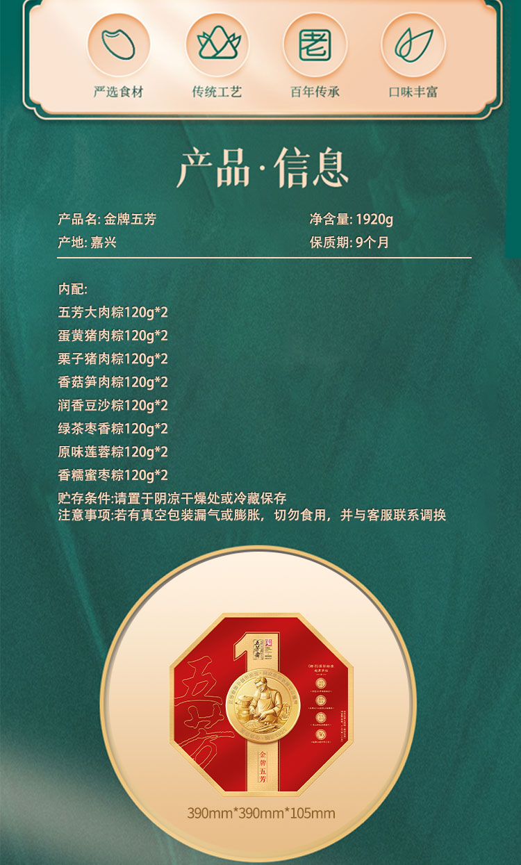 五芳斋真空粽子礼盒金牌五芳1920克 wfztbd-2513