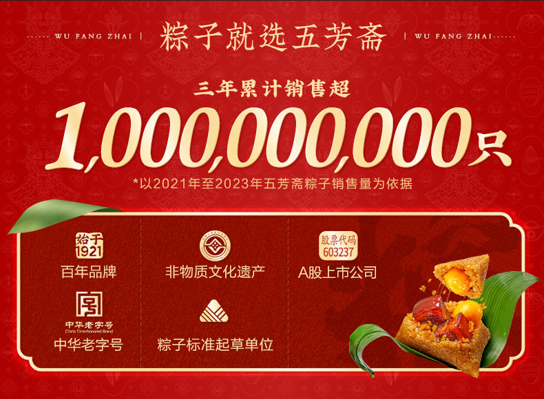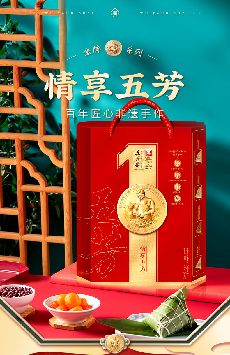 五芳斋情享五芳粽子礼盒1200克/盒12个粽子