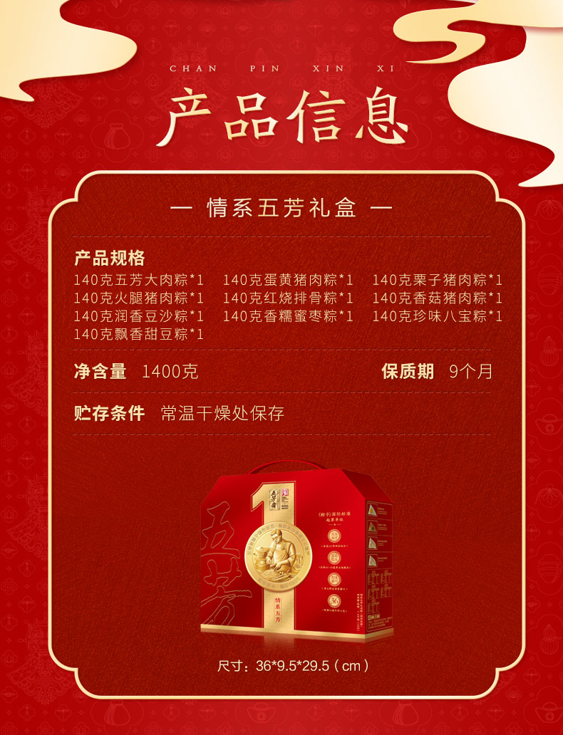 五芳斋情系五芳粽子礼盒1400g/盒10只粽子