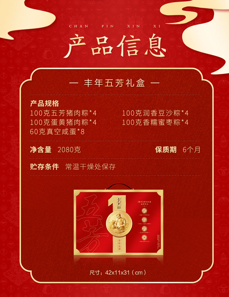 五芳斋丰年五芳粽子礼盒2080克16个粽子+8个咸鸭蛋