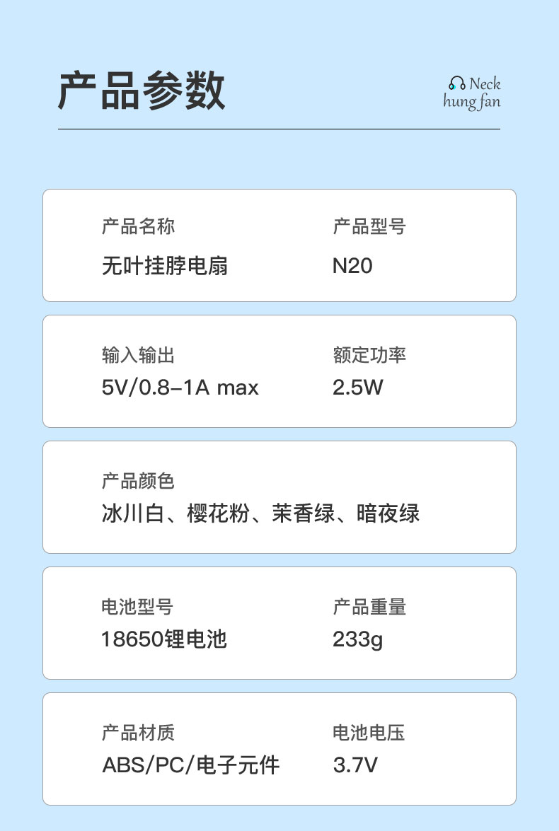 艾青春夏日热销无线挂脖风扇N20