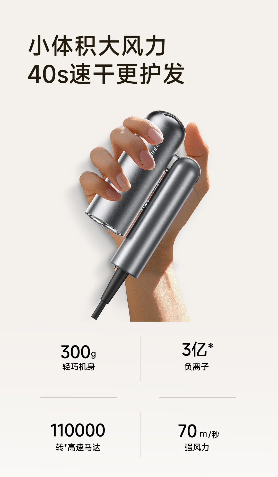 11万转高速马达,创新柔性折叠,300g轻巧机身,轻松携带