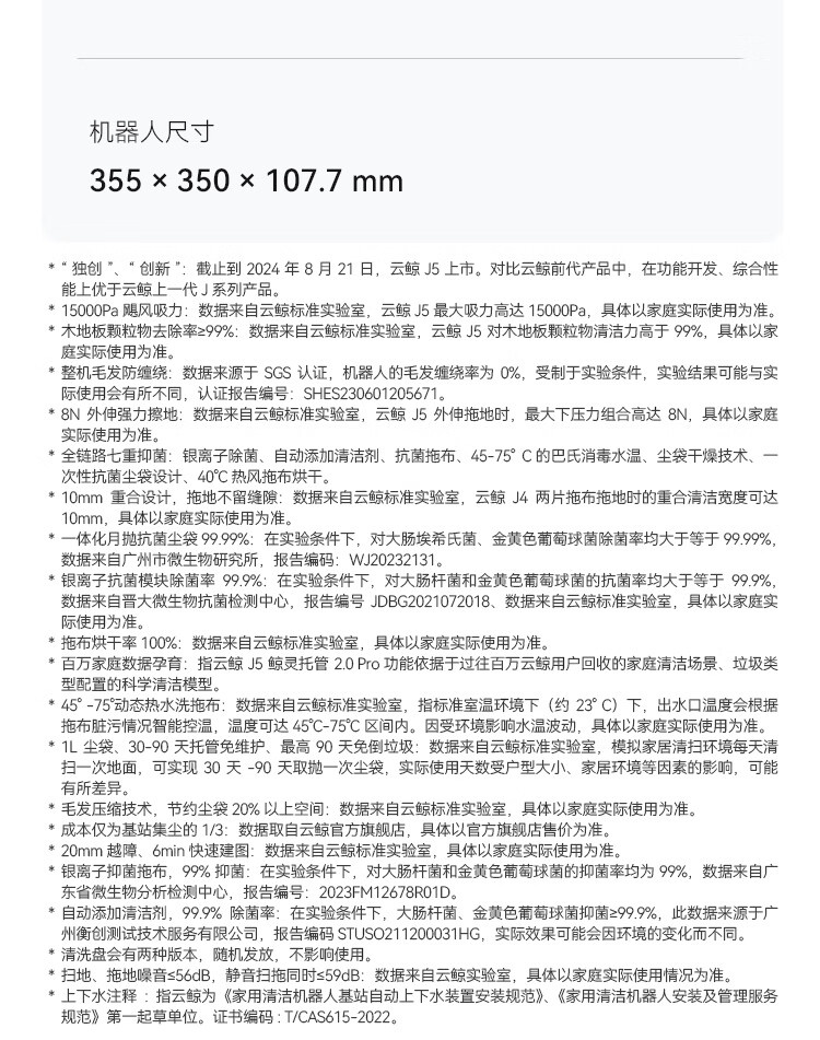 云鲸(NARWAL)扫地机器人J5