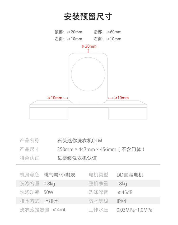 石头(Roborock)迷你洗衣机单洗Q1M(小咖灰、桃气粉)