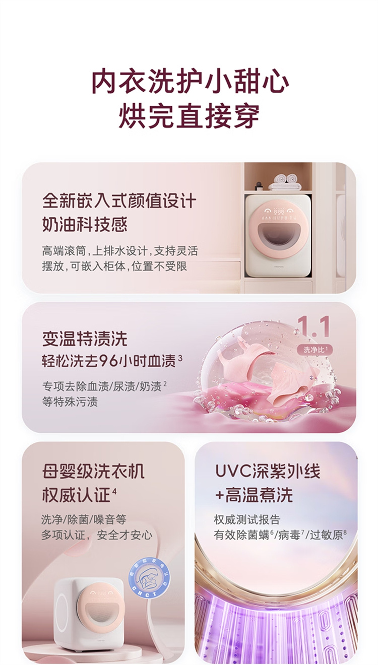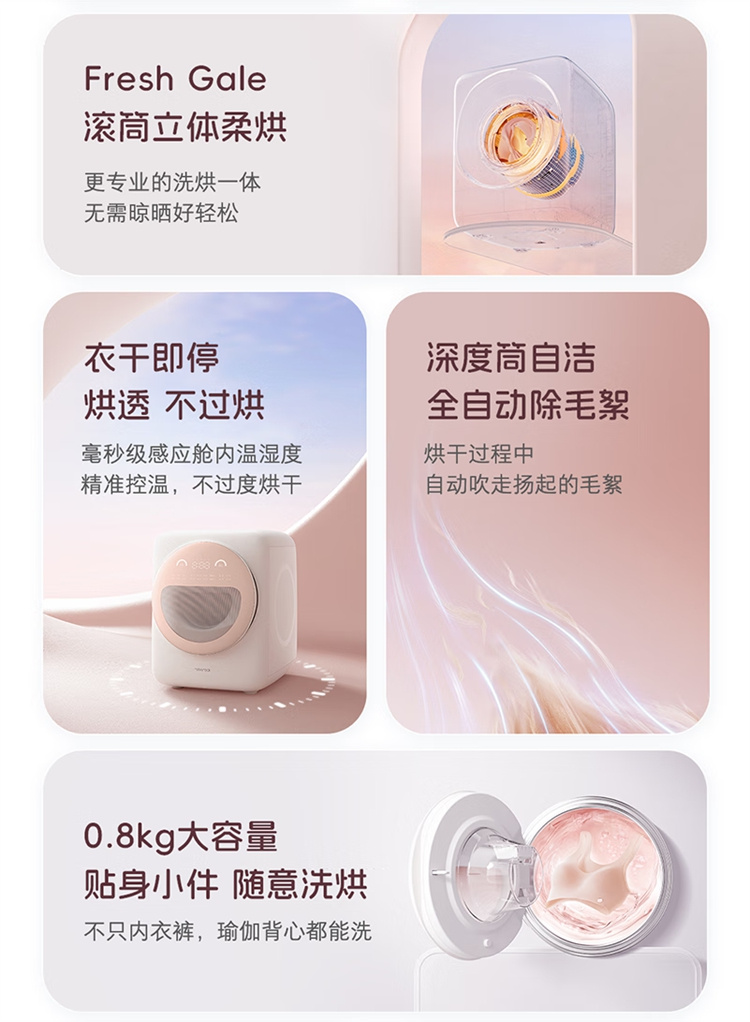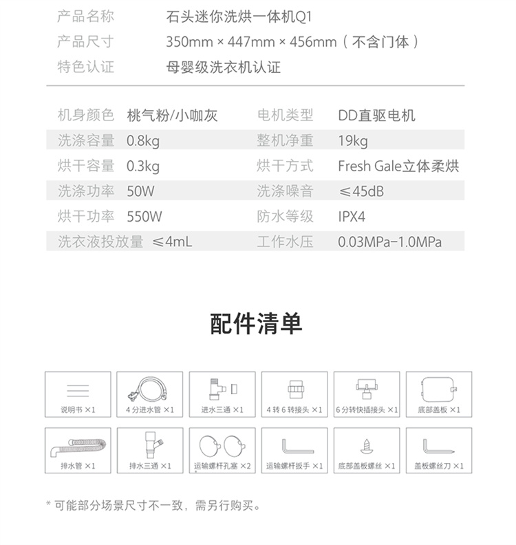 石头(Roborock)迷你洗衣机洗烘一体Q1(小咖灰、桃气粉)
