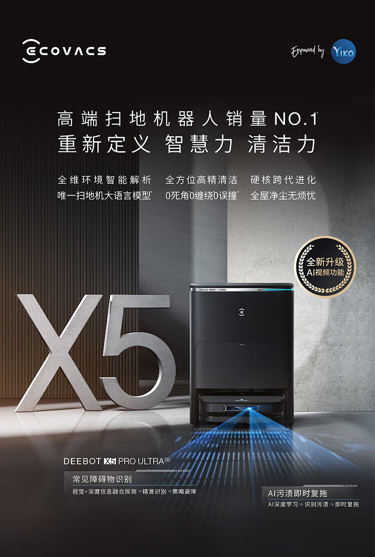 科沃斯(Ecovacs)扫地机器人X5PRO ULTRA AI