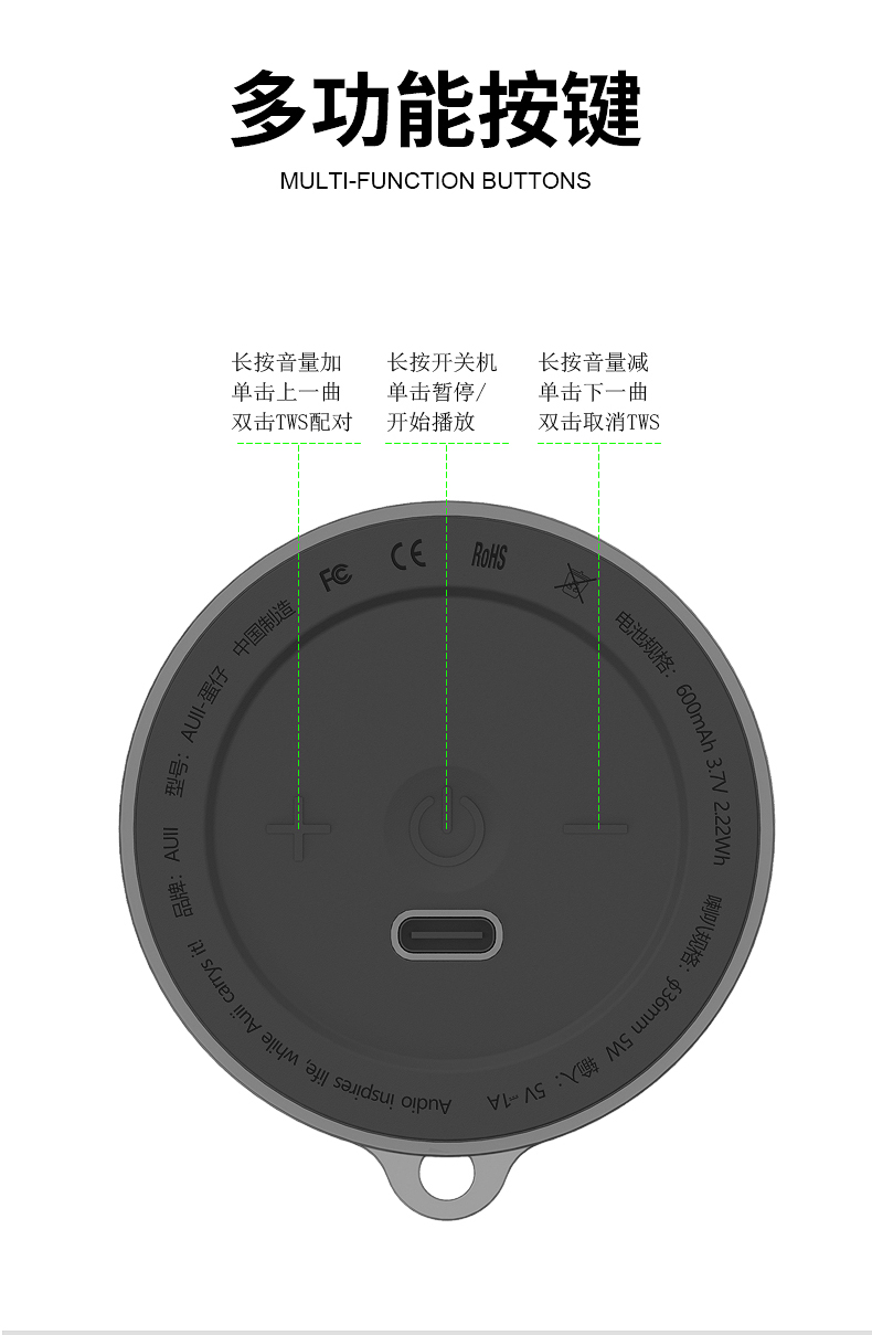 6.内置600mAh大容量电池,超长的续航时间;