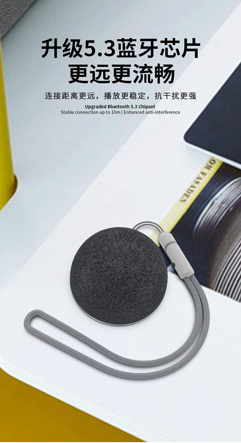 2.升级5.3蓝牙芯片,连接距离更远,播放更稳定,抗干扰更强;