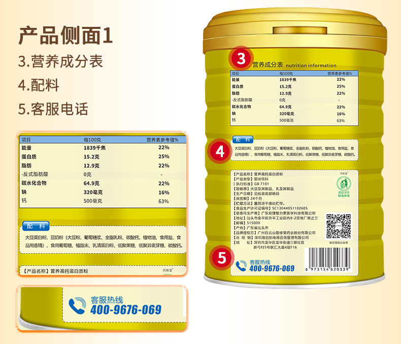 敬修堂营养高钙蛋白质粉礼盒装1000g/罐*2