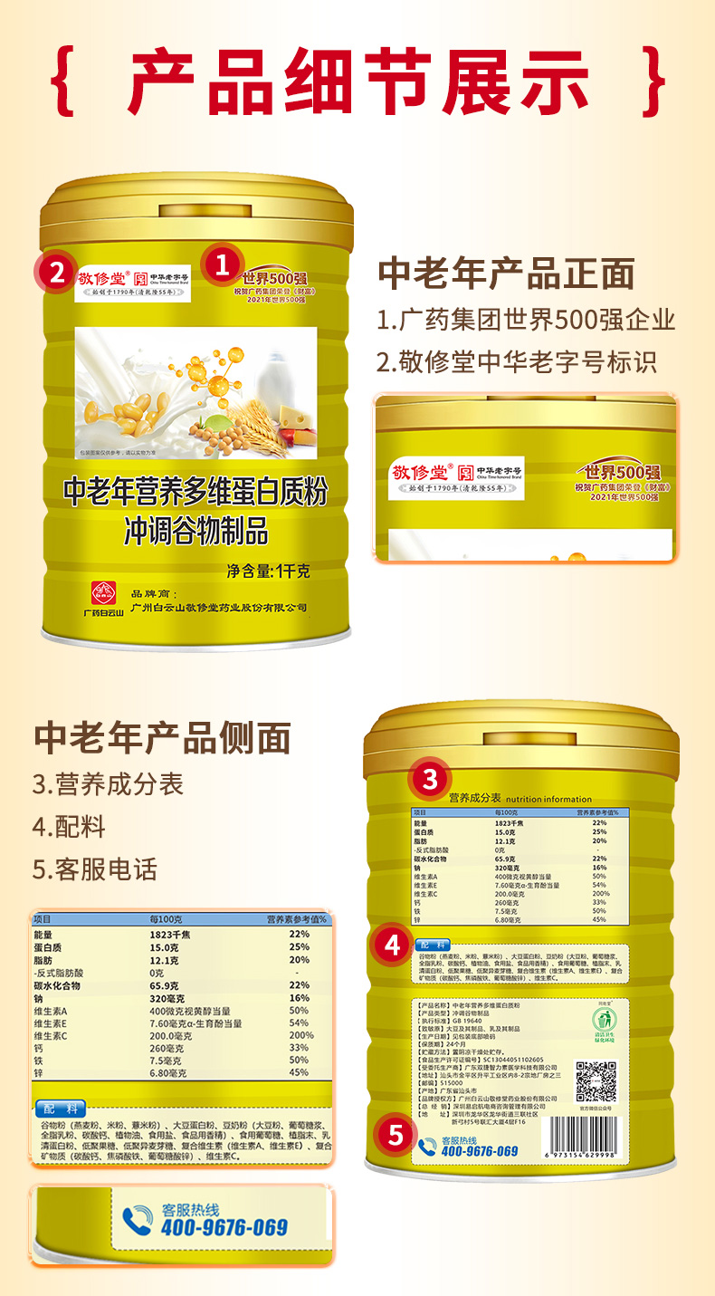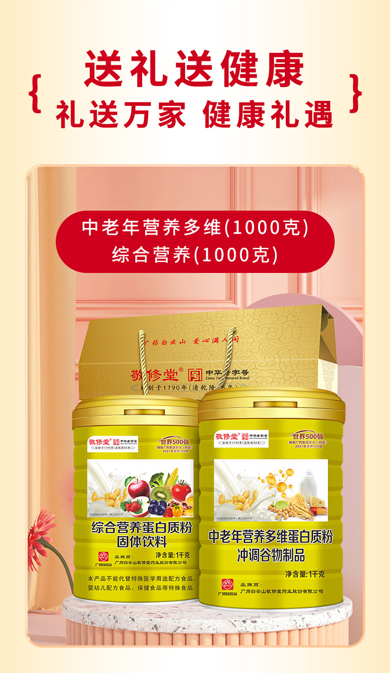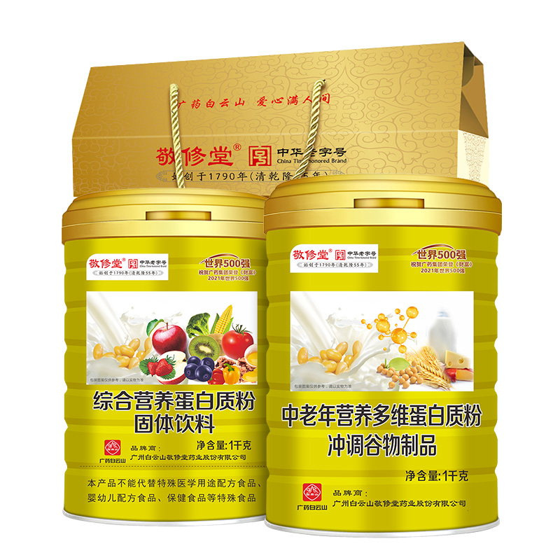 敬修堂综合营养蛋白质粉+中老年营养多维蛋白质粉组合礼盒装1000g/罐*2