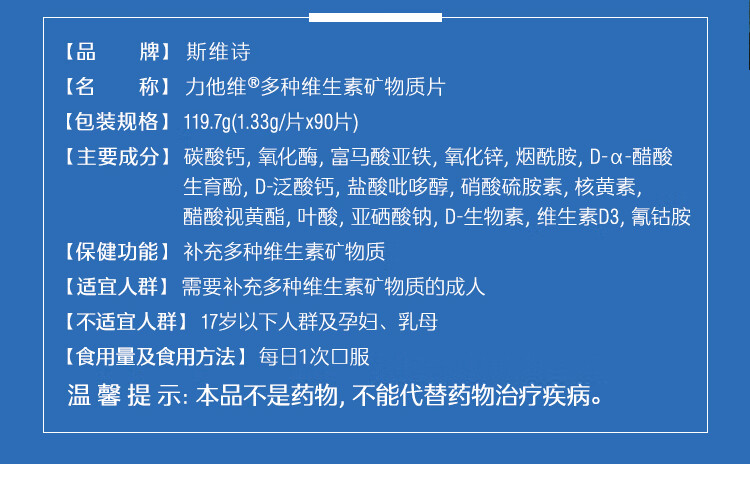 • Swisse斯维诗力他维多种维生素矿物质片 90片