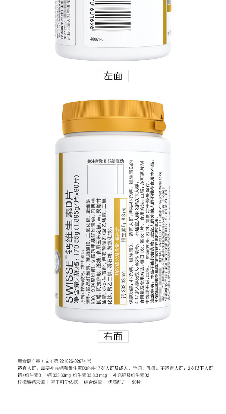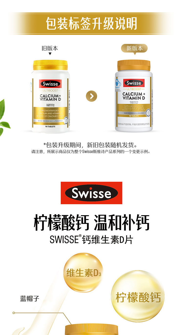 Swisse斯维诗成人钙片维生素D片90粒(进口)