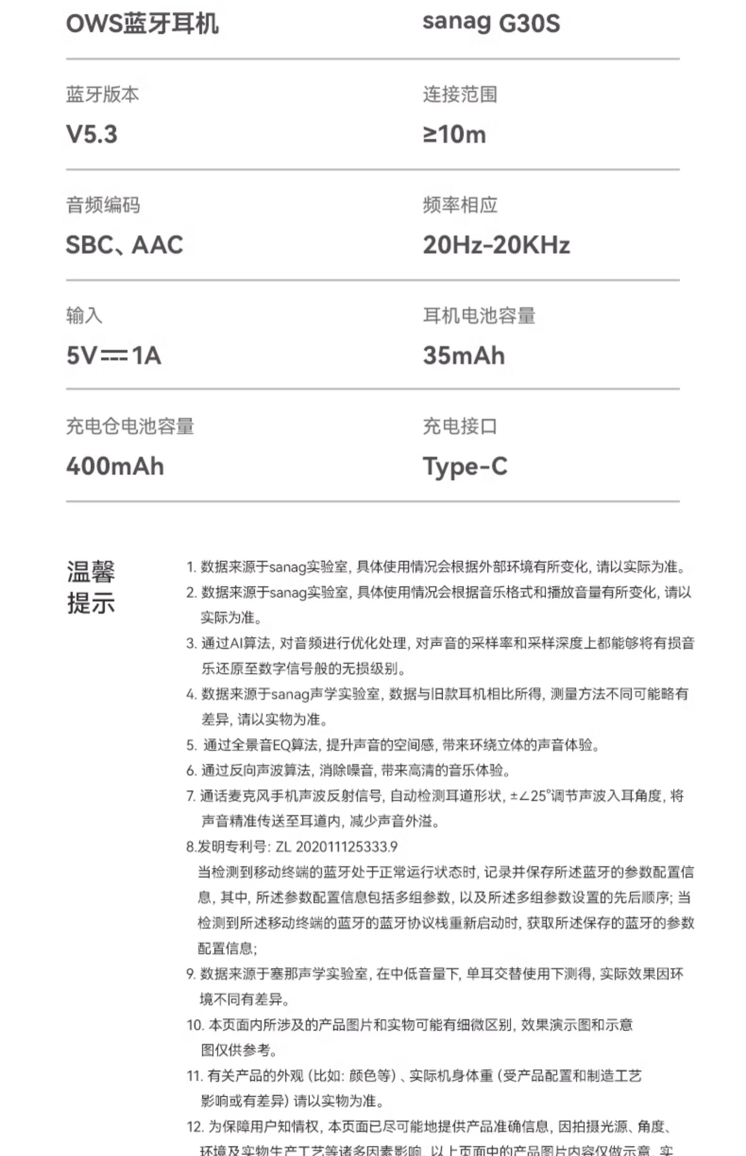 AG塞那G30蓝牙耳机挂耳式真无线不入耳运动降噪耳机
