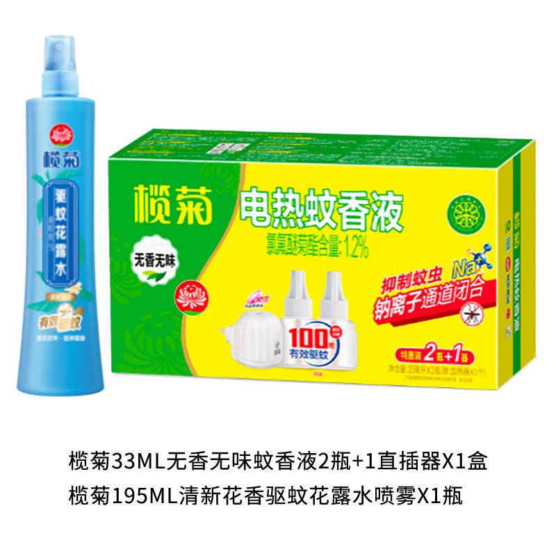 榄菊夏季驱蚊组合套装JH-049(蚊香液2瓶+1直插器x1盒+花露水喷雾x1瓶)