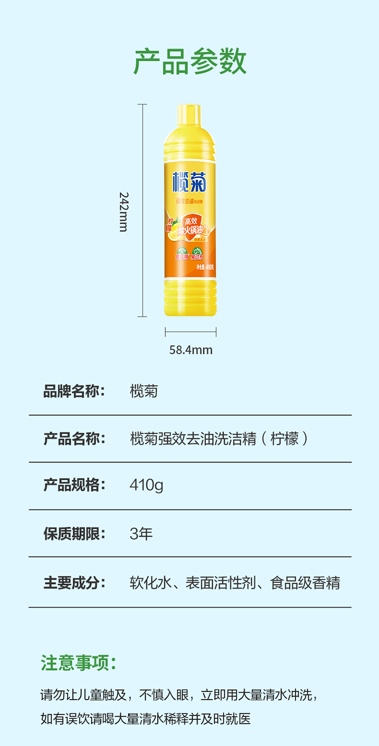 2、榄菊-强效去油洗洁精410g( 柠檬味)x2瓶