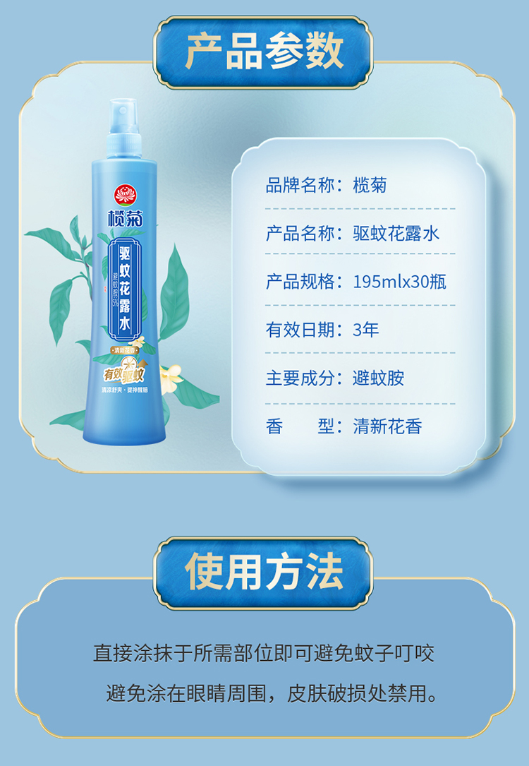 "1、榄菊 195ml清新花香驱蚊花露水喷雾x1瓶