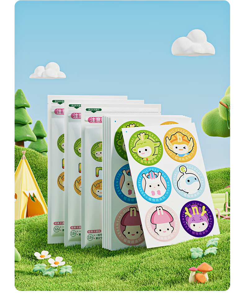 润本叮叮植物精油贴PU款(经典卡通贴) 12片装-2024版-X