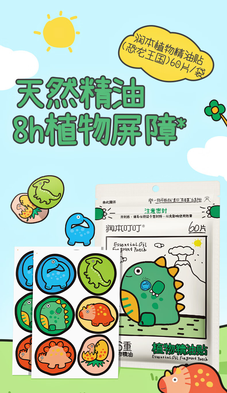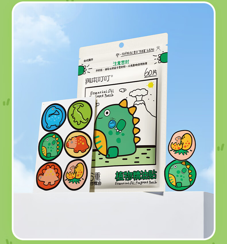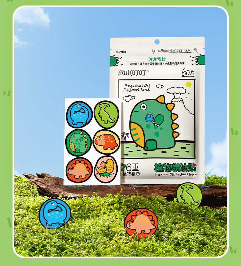 润本叮叮植物精油贴(恐龙王国)-60片装-2024版