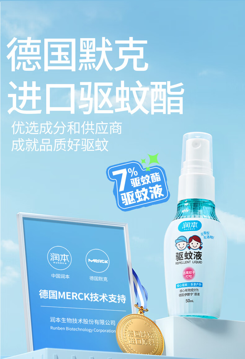 润本7%驱蚊酯驱蚊液(无酒精无香型)50ml