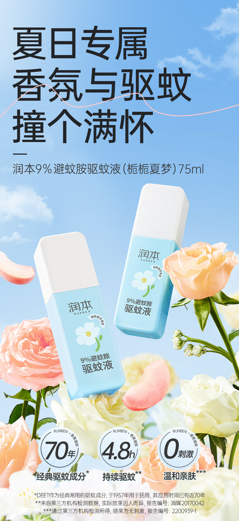 润本9%避蚊胺驱蚊液75ml(栀栀夏梦)-2024版