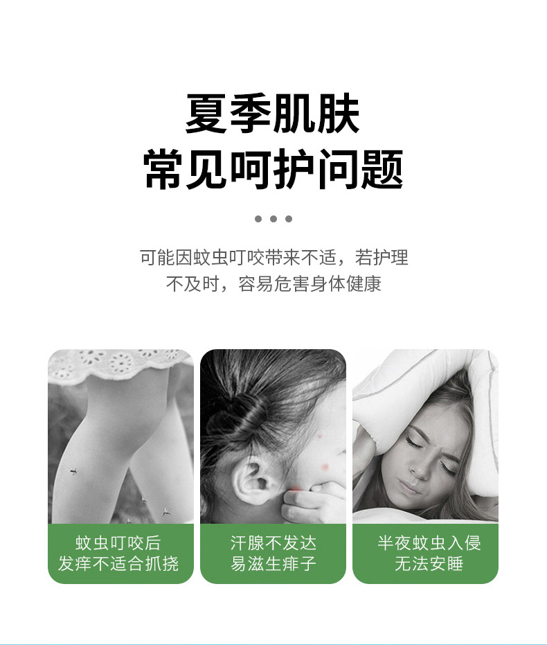 2.清凉舒爽:天然薄荷与蛇胆成分,祛痱止痒,提神醒肤;