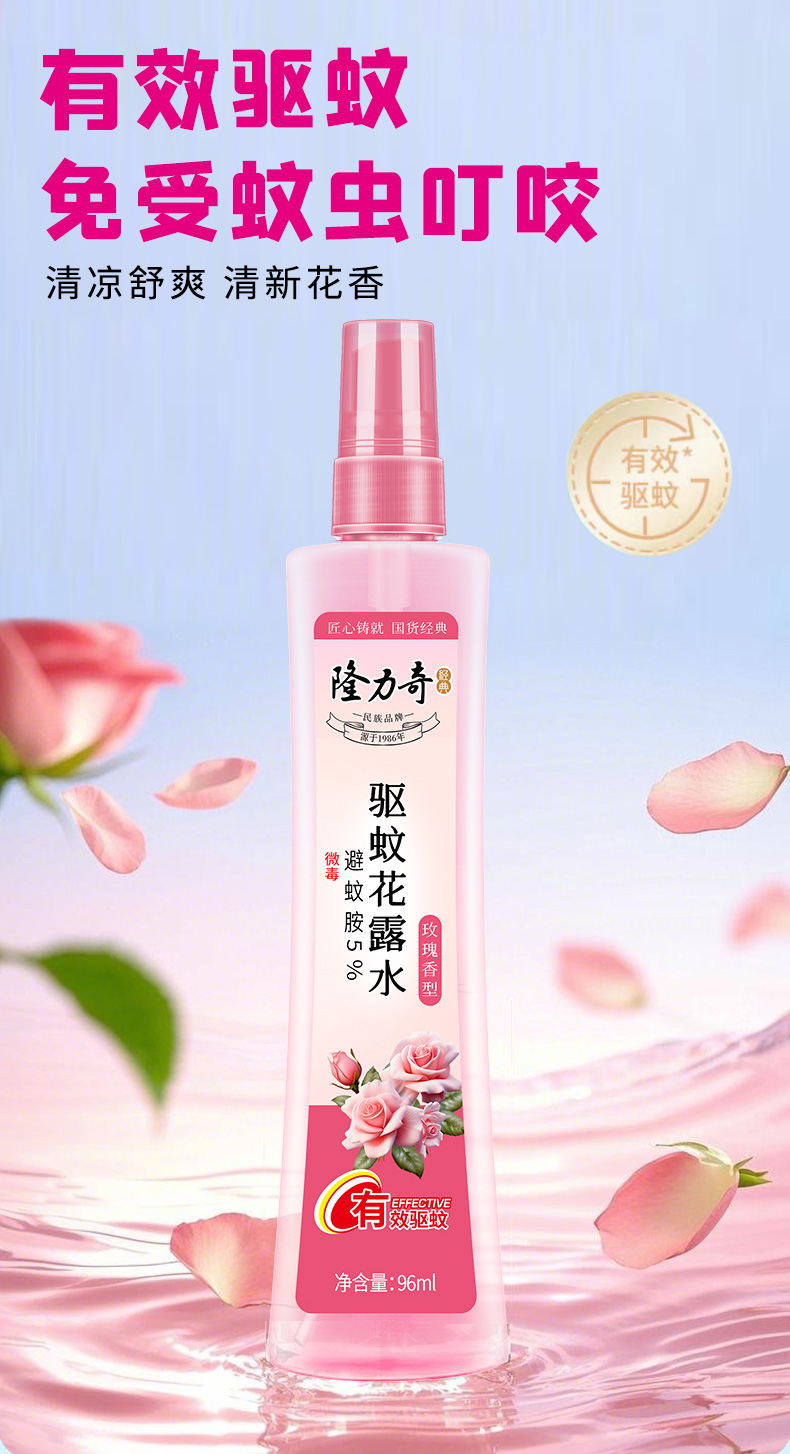 名称:隆力奇玫瑰香型驱蚊花露水96ml