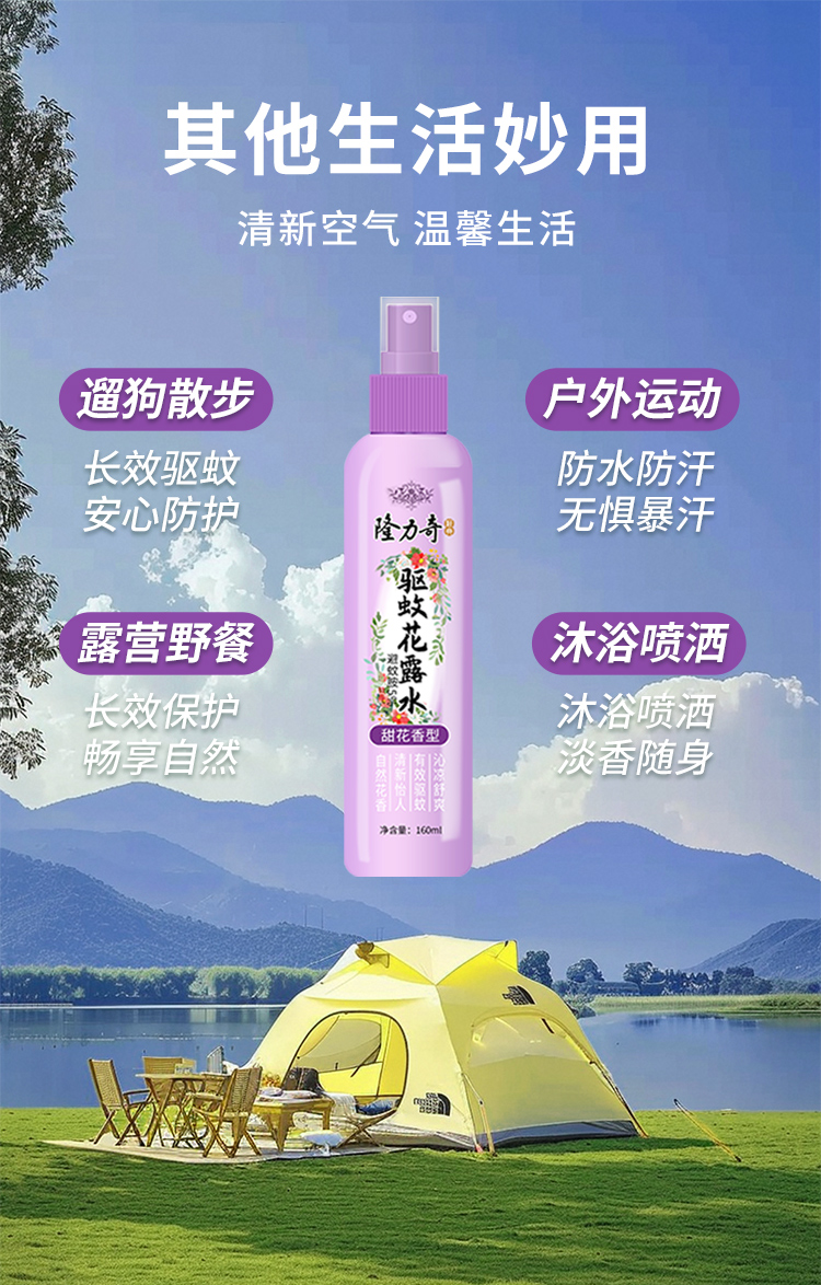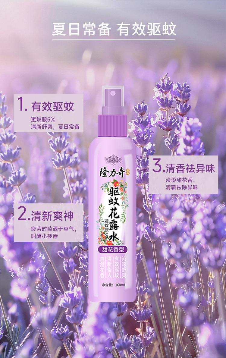 名称:隆力奇甜花香型驱蚊花露水 160ml