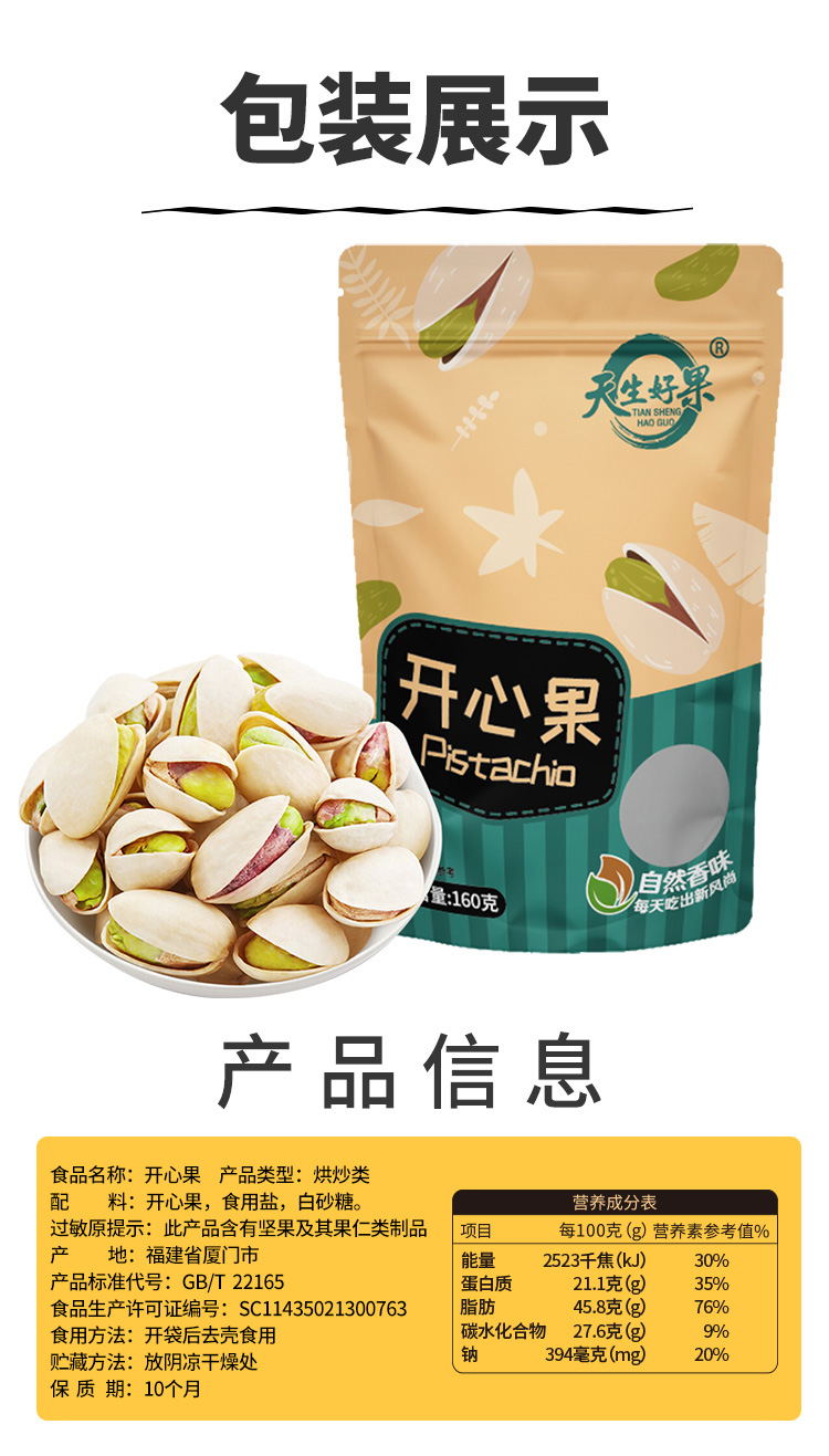 天生好果原色开心果160克