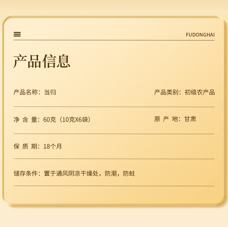 【福东海】当归60克/瓶(10克*6袋) FDH01011265
