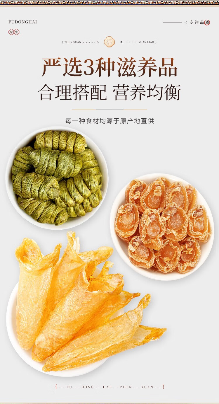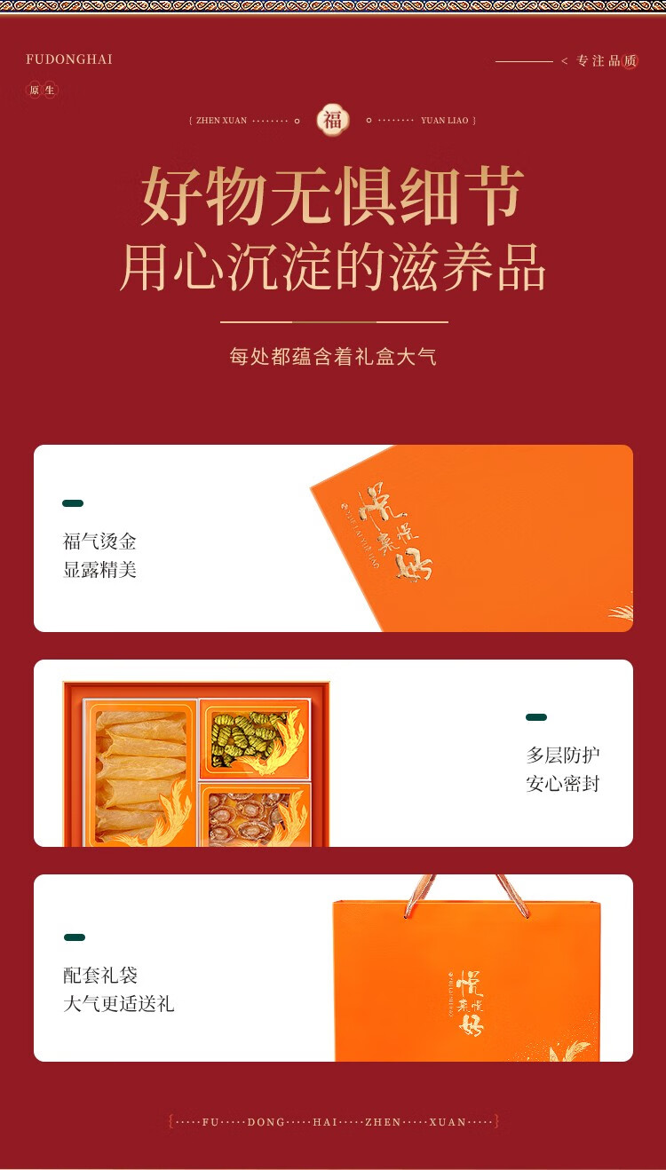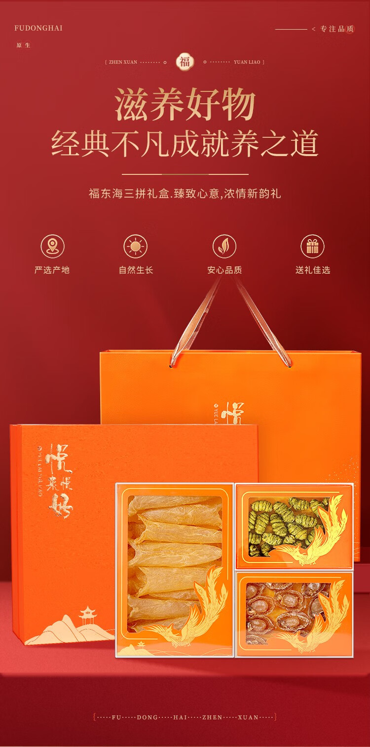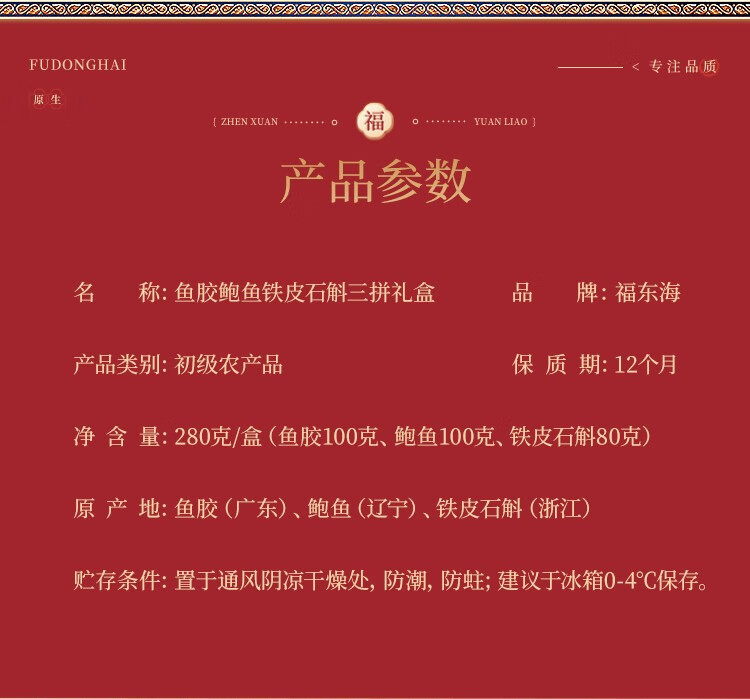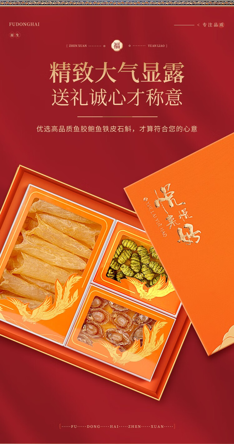 【福东海】鱼胶鲍鱼铁皮石斛三拼礼盒280克/盒 鱼胶100克(大盒)+鲍鱼100克(小盒)+铁皮石斛80克(小盒)FDH01011214